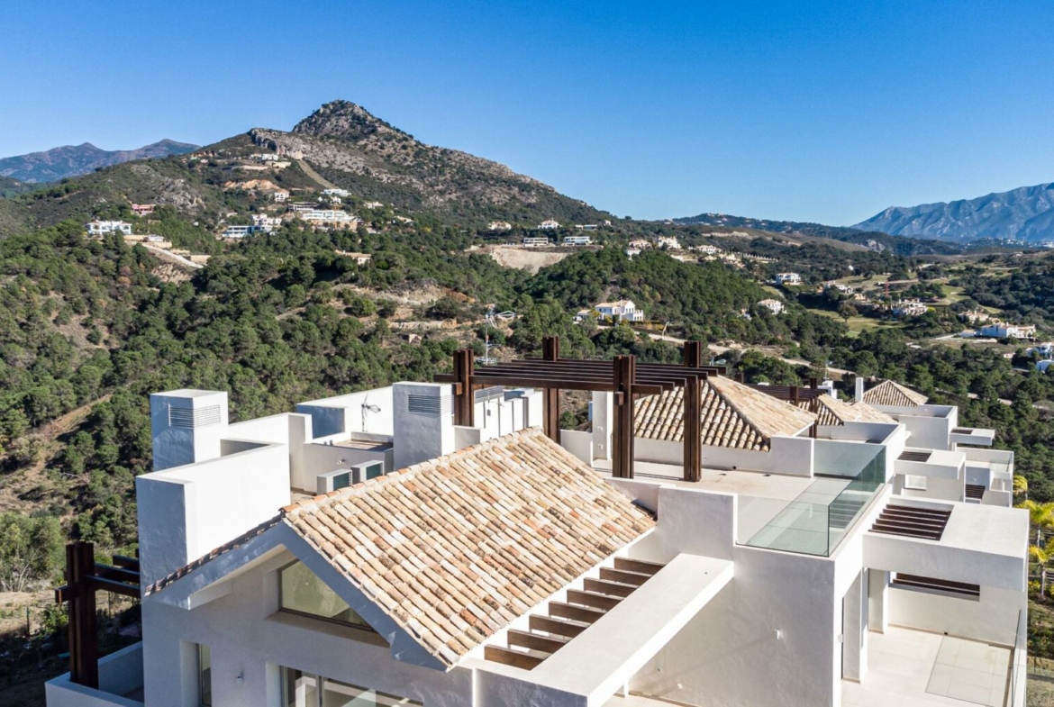 De buitenruimtes van deze woningen zijn ontworpen om de natuurlijke omgeving van Benahavís aan te vullen, met ruimtes die uitnodigen tot ontspanning en genieten van het mediterrane klimaat. Elke woning heeft een privéterras, perfect om te genieten van het uitzicht op zee en de frisse lucht. Bovendien bevatten sommige typologieën een solarium, wat extra ruimte biedt voor buitenrecreatie. De privé tuinen, indien aanwezig, bieden een persoonlijke groene hoek om te ontspannen en van de natuur te genieten. De toevoeging van pergola’s voegt een vleugje elegantie en functionaliteit toe, waardoor schaduwrijke gebieden ontstaan die ideaal zijn voor zonnige middagen. Toegang tot een privé garage zorgt voor comfort en veiligheid voor de voertuigen van de bewoners.