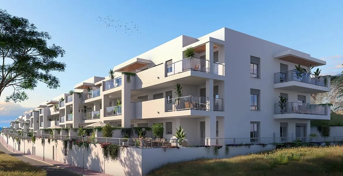 Nieuwe Appartementen te Koop in Benalmádena Pueblo Costa del Sol Moderne Residentiële Ontwikkeling op 3 km van het Strand Deze exclusieve nieuwbouwontwikkeling biedt 57 hedendaagse woningen met 2 en 3 slaapkamers, elk voorzien van 2 volledige badkamers en gelegen op slechts 3 km van de Middellandse Zee. Kies uit appartementen op de begane grond met privé tuinen, middenverdiepingen met ruime terrassen, of penthouses met panoramisch zeezicht. Alle woningen zijn ontworpen voor comfort en functionaliteit, met open woonruimtes die naadloos aansluiten op grote terrassen, ideaal om te genieten van het milde klimaat van de Costa del Sol. Stijlvolle Interieurs en Hoogwaardige Kenmerken Elke woning beschikt over een volledig ingerichte keuken met hoogwaardige apparatuur, lichte en ruime woonkamers met directe toegang tot het terras, en moderne afwerkingen door het hele appartement. Keukens met centrale eilanden en open indelingen integreren harmonieus met de leefruimtes, waardoor de ruimte en het natuurlijke licht maximaal worden benut. Penthouses bieden uitgestrekte terrassen die ideaal zijn voor entertainment en het genieten van adembenemende uitzichten over de Middellandse Zee. Exclusieve Voorzieningen voor een Mediterraan Leven Dit privé wooncomplex biedt alles wat u nodig heeft voor ontspanning en welzijn, inclusief een zwembad, een volledig uitgeruste fitnessruimte en een gastroteca voor sociale bijeenkomsten. Het ontwerp combineert moderne architectuur met aangelegde gemeenschappelijke ruimtes, waardoor een serene omgeving voor bewoners ontstaat om te ontspannen en tot rust te komen. Uitstekende Locatie in Benalmádena Pueblo Gelegen in het charmante dorp Benalmádena Pueblo, biedt de ontwikkeling een perfecte balans tussen een rustige omgeving en gemakkelijke toegang tot stedelijke voorzieningen. Supermarkten, medische centra, scholen, sportfaciliteiten en recreatiegebieden zijn allemaal binnen handbereik. Benalmádena, een van de populairste bestemmingen aan de Costa del Sol, staat bekend om zijn traditionele Andalusische charme, prachtige stranden en bruisende culturele leven. Uitstekende Verbindingen en Nabijgelegen Attracties De ontwikkeling profiteert van uitstekende wegverbindingen, met snelle toegang tot de AP-7 snelweg. Belangrijke bezienswaardigheden zijn onder andere: Benalmádena stranden – 3 km, Málaga Luchthaven – 15 km (ongeveer 15 minuten met de auto), Málaga stadscentrum – 24 km, Torrequebrada Golf – 6 km, Benalmádena Puerto Marina – 7 km, Tivoli World pretpark – 5 km. Uw Ideale Woning aan de Costa del Sol Of u nu op zoek bent naar een permanente woning, een vakantieverblijf of een solide investering, deze nieuwbouwontwikkeling in Benalmádena Pueblo biedt de perfecte combinatie van kwaliteit, ontwerp en locatie.