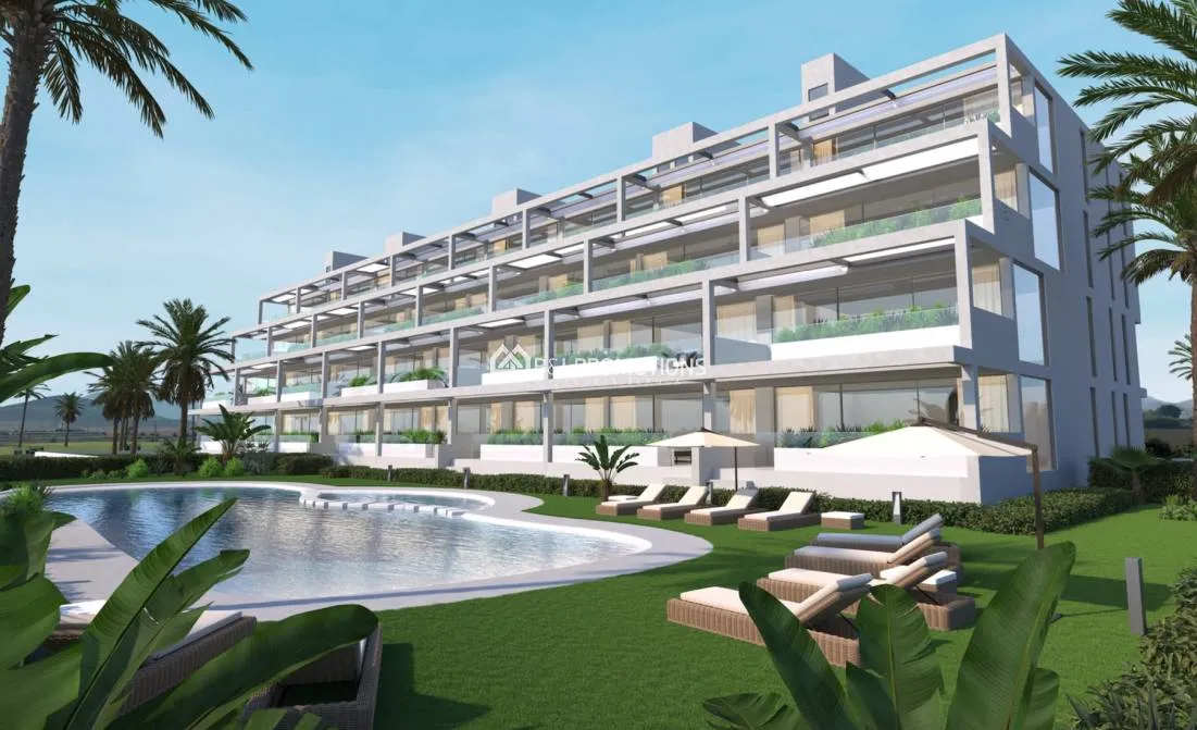 Ooit gedroomd van een appartement in Spanje op wandelafstand van strand en de boulevard met alle restaurantjes?Dan is dit de locatie die U zoekt.Prachtige ruime appartementen met 2 of 3 slaapkamers op een unieke locatie.In Mar de Cristal, vlakbij de bekende stranden ook van Cabo de Palos en een enorm uitgestrekt natuurgebied.Hier is het water nog echt kristal helder. Ideale locatie voor mensen die houden van snorkelen of duiken, of gewoon graag kuieren langs de mooie boulevard en stranden van de Costa Calida.Dit gebied is door de WHO uitgeropen tot gezondste en beste gebied van Europa. Hier schijnt de zon echt minimaal 320 dagen per jaar.Vlakbij kan u ook de prestigieuze La Manga Club vinden, waar u naast een 18holes golfbaan ook tal van andere sporten kunt uitoefenen.Een prachtig gebied en voor elk wat wils.De appartementen zelf worden gebouwd rondom een gemeenschappelijk zwembad en een mooie tuin.Het zijn zeer ruime appartementen met groot terras die allemaal uitzicht hebben over de groenzone en het zwembad.Er zijn dus ook appartementen met 3 slaapkamers mits een meerprijs.Ook heeft ieder appartement zijn eigen parkeerplaats en ook nog een extra berging.Alle electrische toestellen zijn tevens inbegrepen in de prijs.Zeer mooie appartementen op een schitterende locatie vlakbij strand.