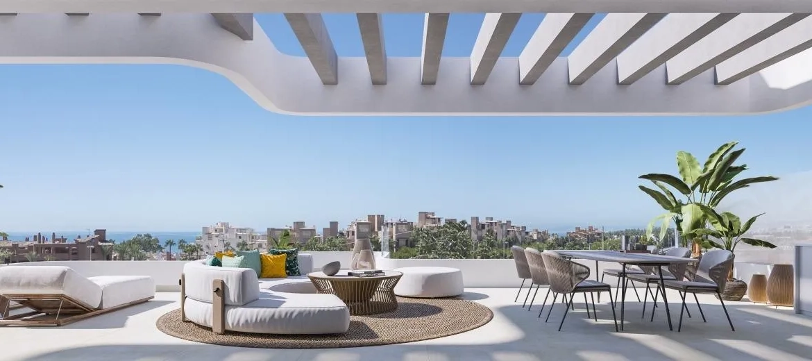 Nieuwbouw Residentieel Complex in Estepona Gelegen in een van de meest populaire steden aan de Costa del Sol, biedt dit moderne complex een geweldige verbinding naar omringende gebieden. Het ligt op slechts 5 minuten rijden van Estepona, 10 minuten van Puerto Banús en 20 minuten van Marbella. Het vliegveld van Málaga is bereikbaar binnen 50 minuten, terwijl het vliegveld van Gibraltar op 43 minuten afstand ligt. Het complex bestaat uit vijf blokken met drie verdiepingen, waaronder begane grond appartementen met tuin en mogelijkheid voor een privézwembad, tussenverdiepingen, en penthouses met een solarium en terrassen van 108 m². Elk appartement beschikt over een parkeerplaats. Het ontwerp van het complex is modern en elegant, geheel in lijn met de Mediterrane omgeving. Grote ramen zorgen voor veel natuurlijk licht, terwijl het comfort en de kwaliteit gewaarborgd blijven. De gemeenschappelijke ruimtes zijn ontworpen voor ontspanning en levenskwaliteit. Bewoners kunnen genieten van het zwembad, ruime tuinen, een openluchtgym of yoga. Dit alles binnen een veilige omgeving. Estepona behoudt zijn traditionele charme terwijl het moderne faciliteiten biedt zoals hotels, restaurants en winkels. Het oude centrum is autovrij en versierd met kleurrijke bloempotten, wat het aantrekkelijk maakt voor fotografen.