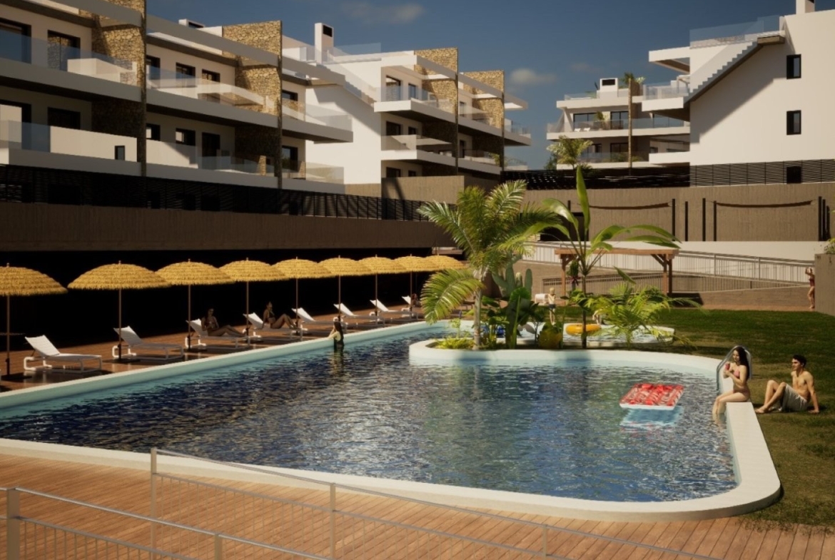 Het complex is volledig afgesloten en uitgerust met camerabewaking, zodat u verzekerd bent van veiligheid en privacy. Bewoners hebben toegang tot uitgebreide voorzieningen: een groot zwembad voor volwassenen en kinderen, aangelegde tuinen, een fitnessruimte met jacuzzi, ontspanningsruimtes, een kinderspeelplaats, kleedkamers en douches. Ook zijn er stallingen voor fietsen en scooters en laadpunten voor elektrische auto’s.