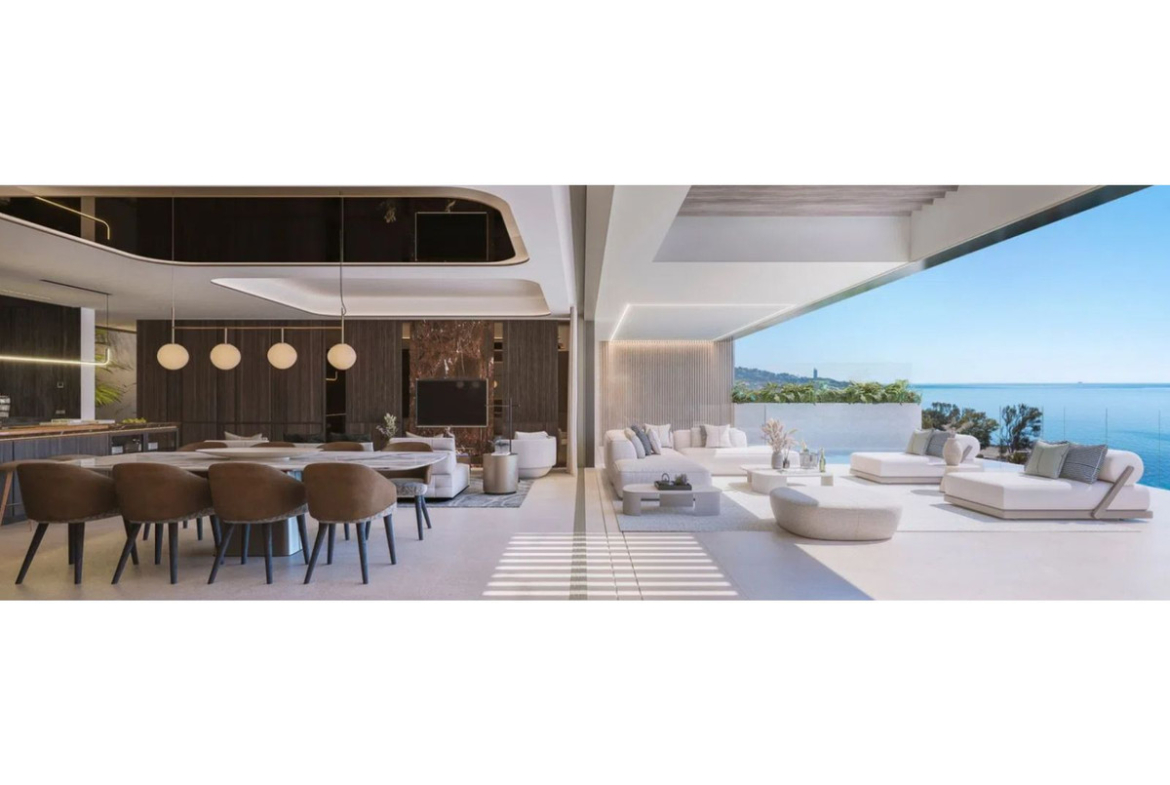 Het interieurontwerp legt de nadruk op balans, proportie en een naadloze verbinding met de buitenruimtes. Heldere en ruime woonkamers, van vloer tot plafond reikende glazen wanden en hoogwaardige materialen creëren een gevoel van harmonie en verfijning.
