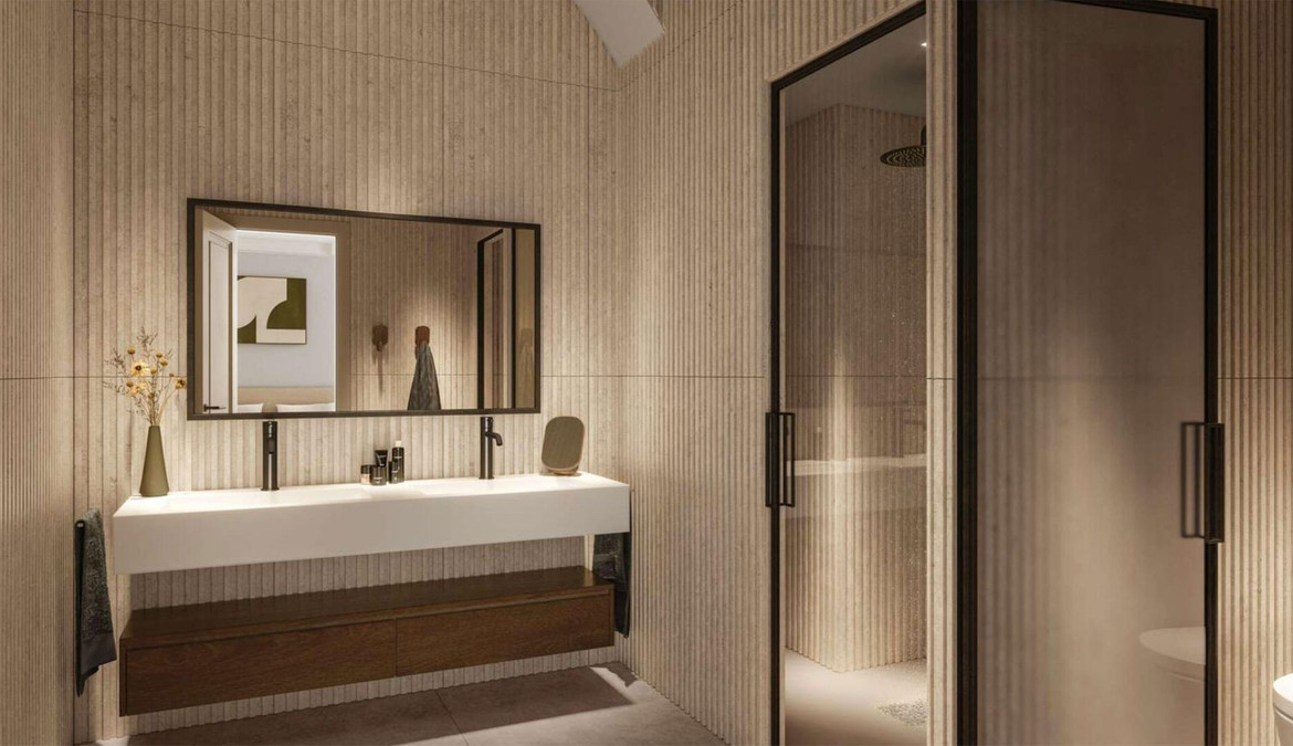 De voorzieningen omvatten twee panoramische zwembaden, een volledig uitgeruste fitnessruimte, een dakterras met een loungegedeelte, een elegante sociale ruimte en 19 parkeerplaatsen met laadpunten voor elektrische voertuigen.