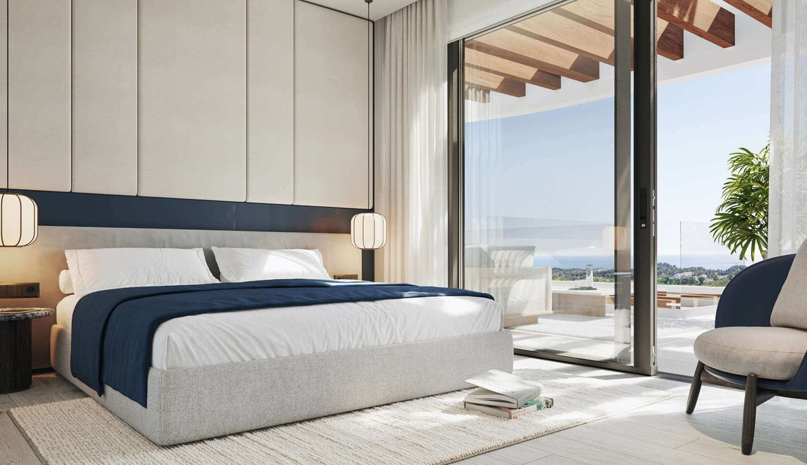 Buitenruimte & voorzieningen: Afhankelijk van het type woning hebben de appartementen grote terrassen of privé-tuinen. De gemeenschappelijke voorzieningen zijn ontworpen met een resortgevoel en omvatten een zwembad, aangelegde tuinen, yoga- en ontspanningsruimtes, en gedeelde werkruimtes voor thuiswerken. Bijna elke woning biedt een prachtig uitzicht op de Middellandse Zee, de bergen en de golfbaan.