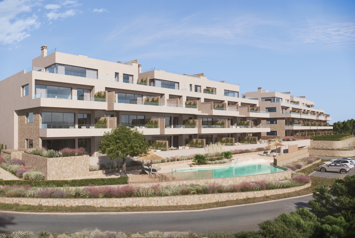 Stap naar buiten en ontdek royale privéterrassen die je leefruimte uitbreiden naar de open lucht. Met een zonnige ligging op het zuiden zijn deze buitenruimtes ideaal om te luieren in de zon of te genieten van lange avonden met vrienden en familie. Veel appartementen hebben directe toegang tot het terras vanuit zowel de woonkamer als de slaapkamers. De penthouses bieden een echte luxe upgrade: ruime dakterrassen met panoramisch uitzicht op de omliggende natuur en de Middellandse Zee. De woningen op de begane grond kunnen worden aangepast met privéjacuzzi’s en buitenkeukens, zodat je je eigen resort kunt creëren.