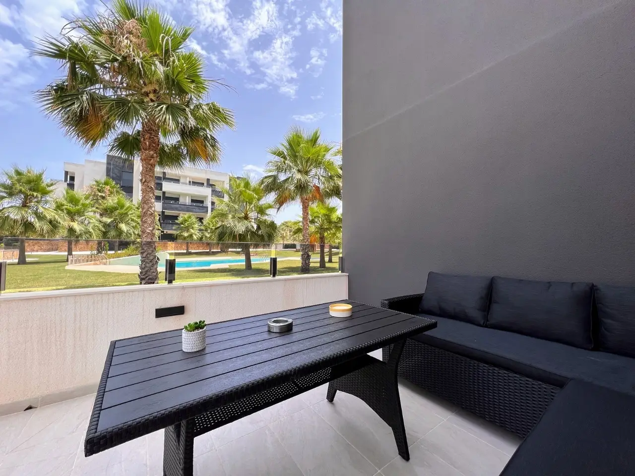 Stap naar buiten naar uw eigen, royale buitenruimte met twee luxe loungesets. Deze ruimte is perfect om gasten te ontvangen, te genieten van rustige avonden of te genieten van de zon. De buitenruimte van het appartement voelt als een verlengstuk van uw leefruimte, waardoor u een naadloze binnen-buitenlevensstijl krijgt.