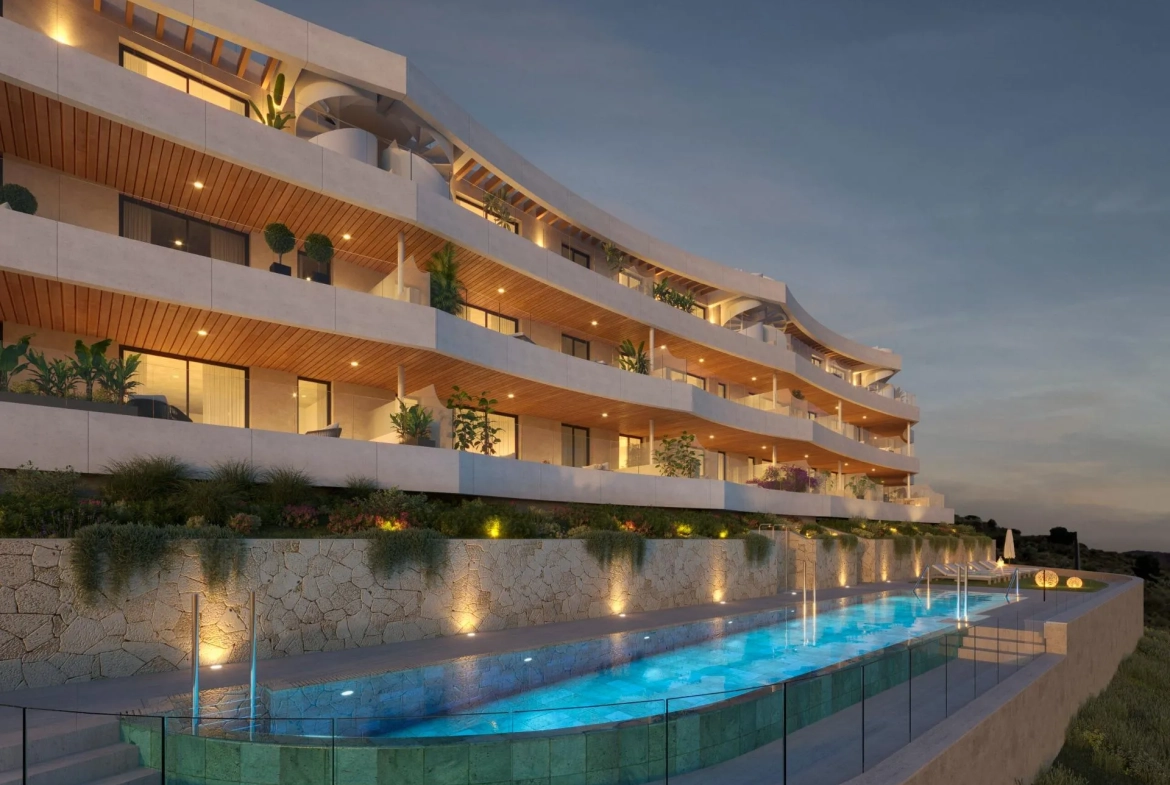 Nieuwbouwappartementen met zeezicht in Rincón de la Victoria Moderne woonervaring geïnspireerd door de Middellandse Zee Dit nieuwbouwproject in Rincón de la Victoria biedt een eigentijdse woonervaring. Gelegen op een verhoogd perceel op slechts 3 km van het strand, bieden de woningen een vrij uitzicht op zee. Het project is ideaal voor kopers die een modern huis zoeken met veel natuurlijk licht en een ontspannen levensstijl aan de Costa del Sol. Woningen ontworpen voor comfort en levensstijl De ontwikkeling omvat appartementen met 2 en 3 slaapkamers, afgestemd op verschillende levensstijlen. Begane grond appartementen hebben ruime privéterrassen, terwijl penthouses beschikken over solariums. Alle woningen hebben grote terrassen om optimaal te genieten van het milde klimaat. De architectuur verbindt de zee met glazen balustrades en royale openingen die natuurlijk licht binnenlaten. Kwaliteitspecificaties en moderne kenmerken Elke woning is voorzien van hoogwaardige afwerkingen en moderne comforts. Ze beschikken over luchtkanalen voor airconditioning, een aerothermisch systeem voor warm water, ingerichte keukens met apparatuur, en badkamers met douchewanden. Een privéparkeerplaats en opslagruimte zijn inbegrepen. Exclusieve gemeenschappelijke ruimtes voor dagelijks plezier Bewoners hebben toegang tot een gemeenschappelijk zwembad en een volledig uitgeruste fitnessruimte. De zorgvuldig ontworpen gemeenschappelijke ruimtes versterken het welzijn en de exclusiviteit van het complex. Uitstekende locatie nabij zee, golf en Malaga De stranden van Rincón de la Victoria liggen op ongeveer 3 km afstand. Anoreta Resort en Golf ligt op ongeveer 4 km, terwijl de beroemde Cueva del Tesoro 2 km verderop ligt. Het centrum van Malaga ligt op ongeveer 15 km en de internationale luchthaven van Malaga op ongeveer 25 km. De nabijgelegen jachthaven El Candado ligt op ongeveer 10 km.