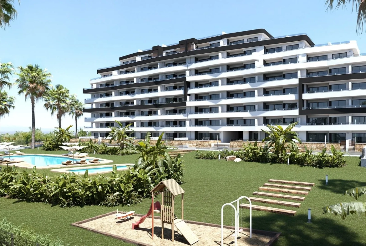 Nieuw residentieel project in San Miguel de Salinas Ruime appartementen met indrukwekkende faciliteiten Dit nieuwbouwcomplex in San Miguel de Salinas biedt moderne appartementen met twee slaapkamers en ruime terrassen, verdeeld over zeven verdiepingen. De omheinde gemeenschap beschikt over hoogwaardige voorzieningen zoals aparte zwembaden voor volwassenen en kinderen, groene zones, een kinderspeelplaats en een petanquebaan. Strategische ligging aan de Costa Blanca Gelegen in het charmante stadje San Miguel de Salinas, bevindt dit project zich op een strategische locatie aan de Costa Blanca. Het ligt op loopafstand van het stadscentrum met alle essentiële voorzieningen zoals winkels, restaurants en gezondheidscentra. Bereikbaarheid van belangrijke locaties De woning ligt op korte rijafstand van diverse interessante plekken: golfbanen zoals Las Colinas en Campoamor op slechts 7 km afstand en de stranden van Orihuela Costa en Torrevieja op ongeveer 10 km. Winkelcentrum Zenia Boulevard is slechts 9 km verwijderd. De luchthaven van Alicante ligt op 50 km afstand en de luchthaven Murcia Corvera op ongeveer 55 km. Hoogwaardige specificaties Elk appartement is ontworpen met moderne afwerkingen en functionaliteit: volledig uitgeruste keukens met inbouwapparatuur, gemotoriseerde rolluiken, een beveiligde voordeur, warm water via aerothermische energie, en volledig geïnstalleerde airconditioning. Er is een lanceeraanbieding waarbij een meubelpakket is inbegrepen bij de eerste verkochte eenheden. Bovendien heeft elk appartement een toegewezen parkeerplaats. Over San Miguel de Salinas San Miguel de Salinas is een schilderachtige gemeente in de regio Vega Baja del Segura, onderdeel van de levendige Valenciaanse gemeenschap, met prachtige uitzichten op de lagunes van Torrevieja en La Mata en een rustige, gezinsvriendelijke sfeer.