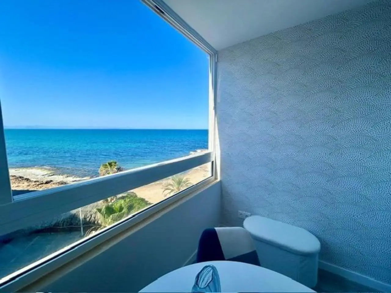 Fantastisch gerenoveerd appartement met één slaapkamer aan de frontlinie in Torrevieja, Alicante, een toplocatie in Cabo Cervera, op slechts 50 meter van het strand.