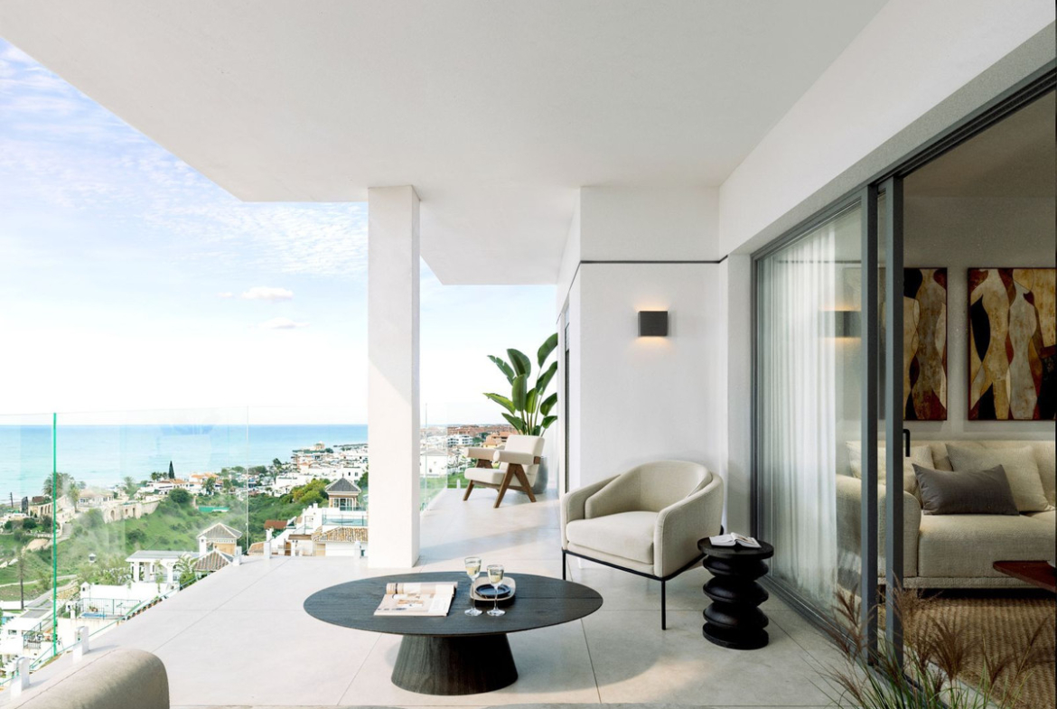 Moderne appartementen te koop in Torrox Costa met uitzicht op zee en een gemeenschappelijk zwembad
