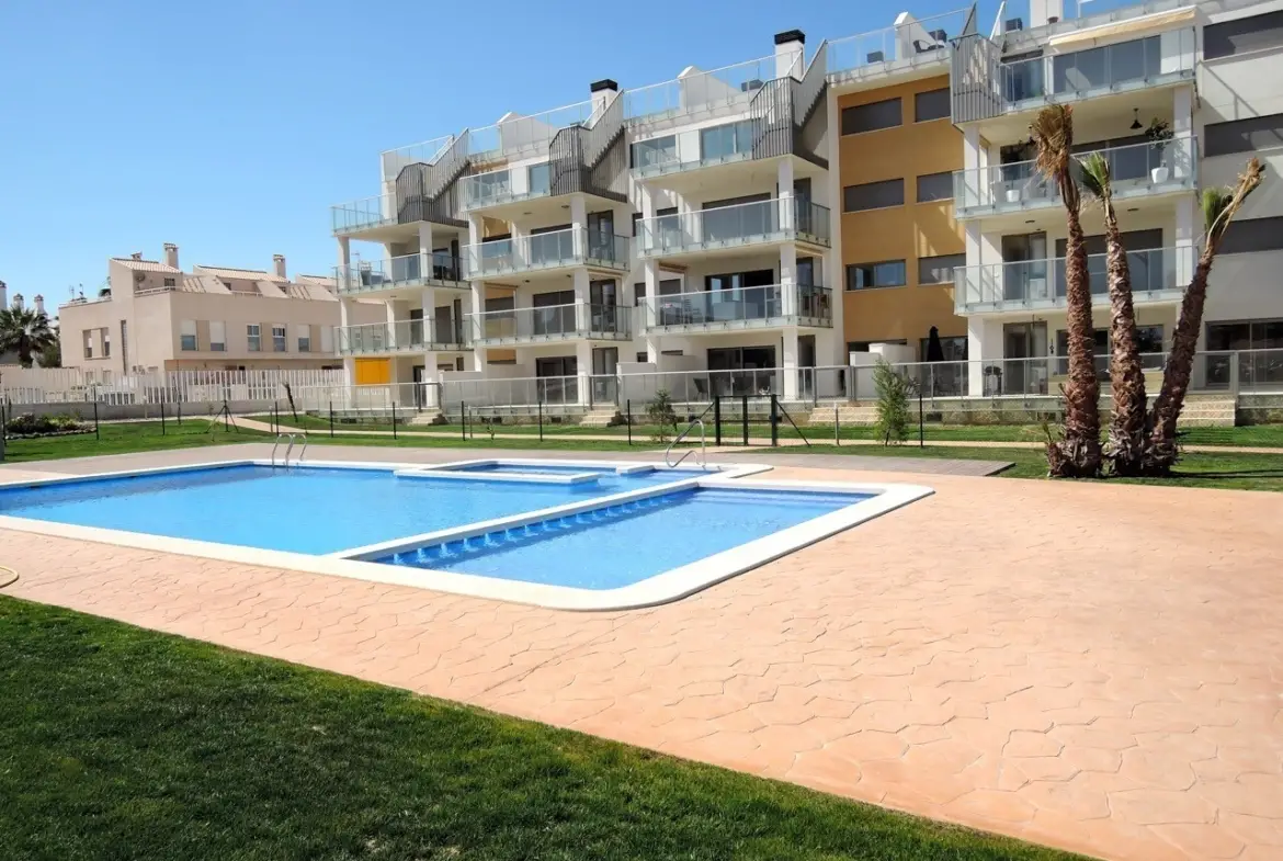 Dit appartement maakt deel uit van ‘Villamartín Gardens’ in de woonwijk El Barranco, Villamartín (provincie Alicante), Costa Blanca Zuid.Het is een heel rustige locatie en toch vlakbij alle voorzieningen, het winkelcentrum Zenia Boulevard, de stranden van Orihuela Costa en de golfbanen van Villamartín, Las Ramblas, Campoamor en Las Colinas.in de urbanisatrie van ongeveer 2,5 hectare werd minder dan 50% bebouwd. De rest werd aangevuld met mooie tuinen, drie zwembaden (waarvan één overdekt en verwarmd), een speeltuin en bio-health fitnessapparatuur. Door de ruimte tussen de gebouwen optimaal te benutten en te focussen op de zuidgerichte oriëntatie van de ruime terrassen van de appartementen, profiteren alle woningen van veel natuurlijk licht. Dit appartement is verhuurd op lange termijn tot einde 2027 en dus een ideale investeringseigendom. Na het verlopen van het contract met de huidige huurders, kan de eigenaar er zelf gebruik van maken.