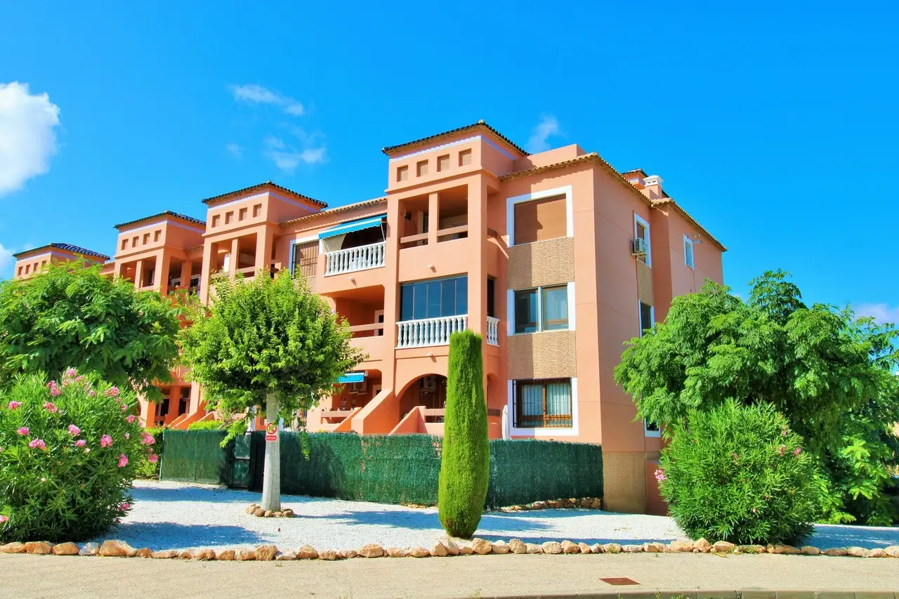 Gelegen in een afgesloten en beveiligde urbanisatie, beschikt het appartement over een lichte open woon- en eetruimte met toegang tot een beglaasd terras, ideaal voor gebruik het hele jaar door. De woning is afgewerkt met marmeren vloeren, ingebouwde kasten en airconditioning, en is direct instapklaar.