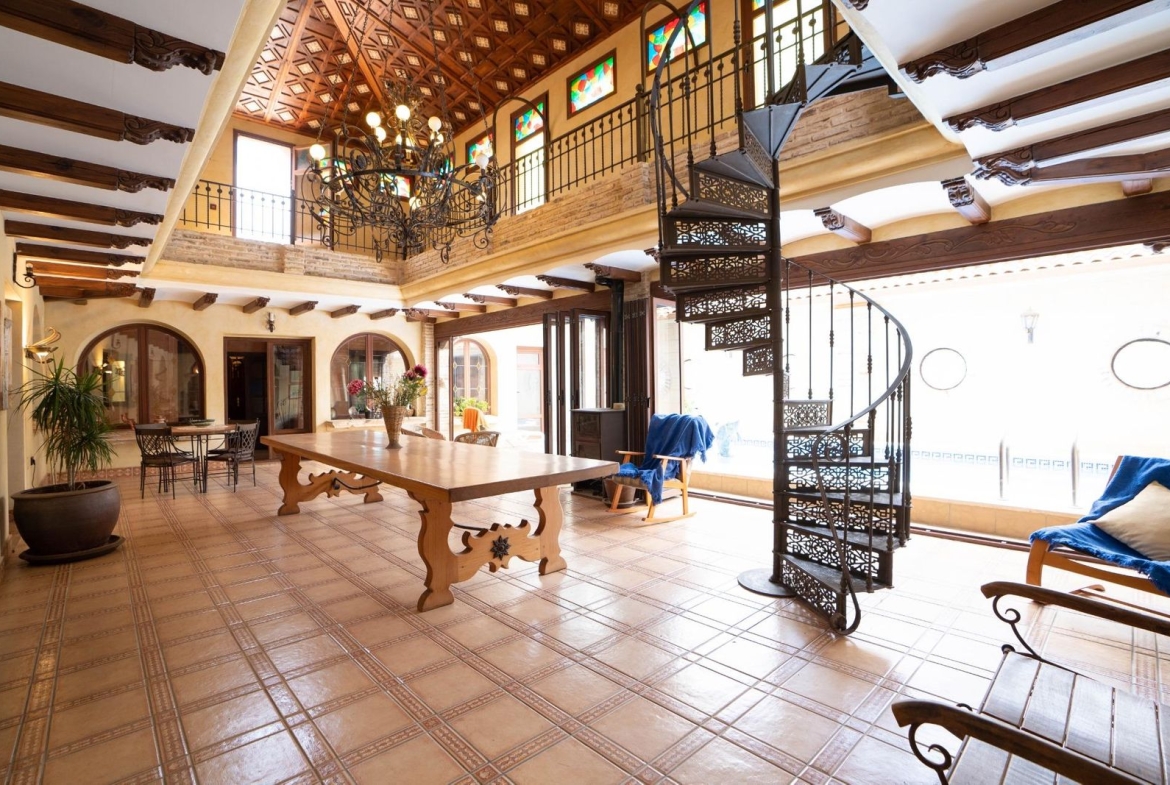 The house is located on the first floor and has a total of 468 m2 distributed around a large living room overlooking a beautiful interior patio with a private pool and barbecue area, it has a total of 4 bedrooms and 4 bathrooms, a large living room with fireplace, large independent kitchen, with pantry and laundry area, three of the bedrooms have en-suite bathrooms and the main bedroom has a dressing room. Also on the upper floor, it has a large attic room and two terraces with views of the sea and the natural park of the Salinas de Torrevieja.On the ground floor, commercial premises with a total of 936 meters distributed between the ground floor and the basement, with a driveway, a large window overlooking a main avenue, ideal for a supermarket or any type of business. It has large open spaces with a minimum ceiling height of 3.50 meters, an office and toilets-changing rooms.Both properties can be sold separately, if you want more information contact us.The house has central heating, air conditioning and is sold furnished and equipped except for personal effects.SAN MIGUEL DE SALINASAlthough it is located in the interior of the province of Alicante, San Miguel de Salinas is only four kilometers from the Mediterranean Sea, located between the tourist towns of Torrevieja and Pilar de la Horadada.This sunny town in the Valencian Community is an authentic viewpoint over the Mediterranean and is popularly known as "El Balcón de la Costa Blanca". And it is that this municipality of the Vega Baja del Segura region is located on a vantage point 100 meters above sea level, in the foothills of the "Los Alcores" mountain range. Located in the area known as "Balcón de la Costa Blanca" a short walk from the town center, with all services and shops, as well as supermarkets, schools and a medical center, very well connected, just 10 minutes by car from the city of Torrevieja and its famous beaches, as well as the main golf courses in the south of the Costa Blanca.From its privileged location you can see the entire Alicante coast, with the added bonus that the Mediterranean is just a short drive away, just 10 minutes, as well as several renowned golf courses in the south of the Costa Blanca.Its pleasant Mediterranean-type climate is another of its tourist attractions, thanks to the lack of rain and mild temperatures. The annual average is 23 degrees Celsius and you can enjoy many sunny days practically during all seasons.