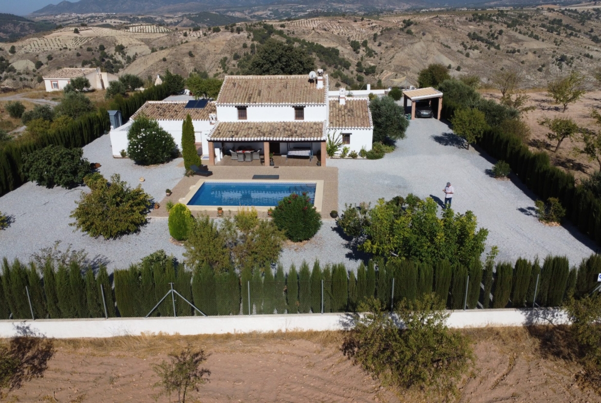Deze sfeervolle cortijo, ook bekend als Cortijo Navarro, ligt op een perceel van 2.400 m² in de prachtige vallei van Castril. De woning is tussen 2019 en 2022 volledig gerenoveerd met behoud van authentieke Andalusische elementen en is instapklaar – ideaal als woonhuis, vakantieverblijf of investering. Deze woning is exclusief in de verkoop bij Ikzoekeenhuisinspanje.nl. Dit betekent dat de woning uitsluitend via ons te koop is, en dat alle documenten vooraf zijn gecontroleerd en alles in orde is of in orde gebracht kan worden. Ligging Volledige privacy, omheind terrein en een prachtige ligging op 10–15 minuten van het dorp Castril. Bereikbaar via een goed onderhouden zandweg van 3 km. Buiten Een fraai aangelegde tuin met zwembad (8×4 m), buitendouche, overdekte patio, BBQ, zonneterras en een mirador met panoramisch uitzicht. De carport en garage bieden voldoende parkeergelegenheid. Indeling Ruime woonkamer met open haard Landelijke keuken met kookeiland en marmeren werkbladen Multifunctionele ruimte (kantoor/slaapkamer) met broodoven Yogakamer/studio met eigen ingang, badkamer, wasruimte en terras Twee slaapkamers boven, elk met badkamer en dressing Balkon met spectaculair uitzicht over de vallei Voorzieningen Extra’s Aluminium ramen met dubbel glas, rolluiken en horren Airconditioning in slaapkamers en yogaruimte Vloeren met tegels, originele houten deuren en balken Zwembad recent opnieuw gevoegd Volautomatisch irrigatiesysteem Volledig omheind terrein, ideaal voor huisdieren Alarmsysteem, internet, zonneboiler + gas, grote houtkachel Elektriciteit, water en riolering aanwezig Deels gemeubileerd, inclusief witgoed Volledig legaal, met escritura Ligging nabij steden Castril: 15 min Huéscar: 30 min Baza: 45 min Granada: 1u40 Dichtstbijzijnde luchthavens: Granada, Almería, Murcia en Alicante Omgeving De Altiplano de Granada biedt ruige natuur, stilte, bergen, valleien, meren en een rijke biodiversiteit – perfect voor wandelen, fietsen en natuurfotografie. Samenvatting Een unieke combinatie van ruimte, privacy en stijl in één van de mooiste natuurgebieden van Andalusië. Instapklaar, met karakter en volop potentie. Neem gerust contact met ons op voor meer informatie of een bezichtiging.