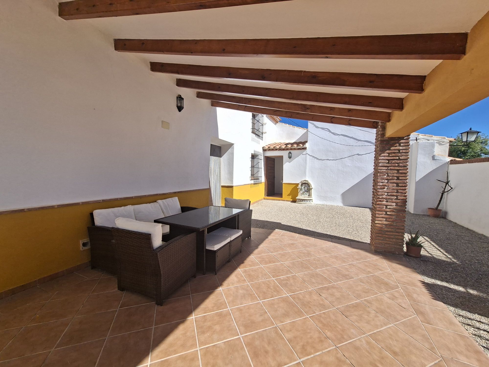 Een prachtig en karakteristiek halfvrijstaand landhuis met authentieke houten balkenplafonds, gelegen op een perceel van 2.162 m² rústico grond met schitterend vrij uitzicht over het Natuurpark van Castril. Deze woning combineert Andalusische charme met modern comfort en is volledig instapklaar — alle nutsvoorzieningen zijn aangesloten. Indeling van de woning De woning is verdeeld over twee verdiepingen en heeft een warme, open sfeer. Binnen vind je een ruime open keuken met eethoek en veel lichtinval, een grote woonkamer met hoge balkenplafonds, open haard en toegang tot een privé patio. Verder beschikt de woning over drie slaapkamers, waarvan twee met ensuite badkamer, plus een apart gasten-toilet. De originele details zoals houten deuren, rustieke baksteenafwerking en terracottavloeren zijn behouden gebleven en geven het geheel een authentieke Andalusische uitstraling. Buitenruimte Het privéterrein van ruim 2.000 m² is gedeeltelijk omheind en biedt veel rust en privacy. Aan de voorzijde bevindt zich een ruim betegeld terras met pergola, ideaal om buiten te eten of te ontspannen met uitzicht op het omliggende landschap. Er is voldoende parkeergelegenheid op eigen terrein en ruimte voor een kleine tuin, moestuin of eventueel een zwembad. De ligging is zeer rustig, met alleen het geluid van de natuur en uitzicht op de heuvels van het natuurpark. Voorzieningen staat van onderhoud -Water, elektriciteit en riool aangesloten -Internet beschikbaar -In uitstekende staat – direct bewoonbaar -Goede toegangsweg en parkeermogelijkheid -Authentieke elementen behouden bij renovatie Ligging omgeving De woning ligt net buiten het charmante bergdorp Castril, op slechts 1,6 km van het stuwmeer El Portillo en 13 km van het meer La Bolera – beide met helderblauw water, perfect voor zwemmen, kajakken, wandelen of picknicken. Castril biedt alle basisvoorzieningen: winkels, restaurants, cafés, een wekelijkse markt, een medisch centrum en een gezellig dorpsplein met uitzicht op de bergen. Het dorp maakt deel uit van het Natuurpark Sierra de Castril, beroemd om zijn wandelroutes, watervallen en de indrukwekkende “Pasarela de Castril”, een houten loopbrug over de rivierkloof met adembenemend uitzicht. Voor grotere voorzieningen zoals supermarkten, scholen en ziekenhuis kun je terecht in Huéscar (25 minuten) of Baza (45 minuten). Afstanden -Castril dorp – 5 minuten rijden -Huéscar – 25 minuten -Baza – 45 minuten -Granada stad – ± 1 uur 45 minuten -Stranden van Almería of Mojácar – ± 1 uur 40 minuten -Luchthaven Granada – ± 1 uur 45 minuten -Luchthaven Almería – ± 2 uur -Luchthaven Alicante – ± 2 uur 45 minuten Waarom dit huis bijzonder is Dit halfvrijstaande landhuis biedt het beste van twee werelden: de rust van het platteland gecombineerd met het comfort van een gerenoveerde woning. De ligging, direct aan de rand van het natuurpark, maakt het ideaal voor natuurliefhebbers, wandelaars en iedereen die op zoek is naar het authentieke Andalusië. Perfect als permanent verblijf of vakantiehuis