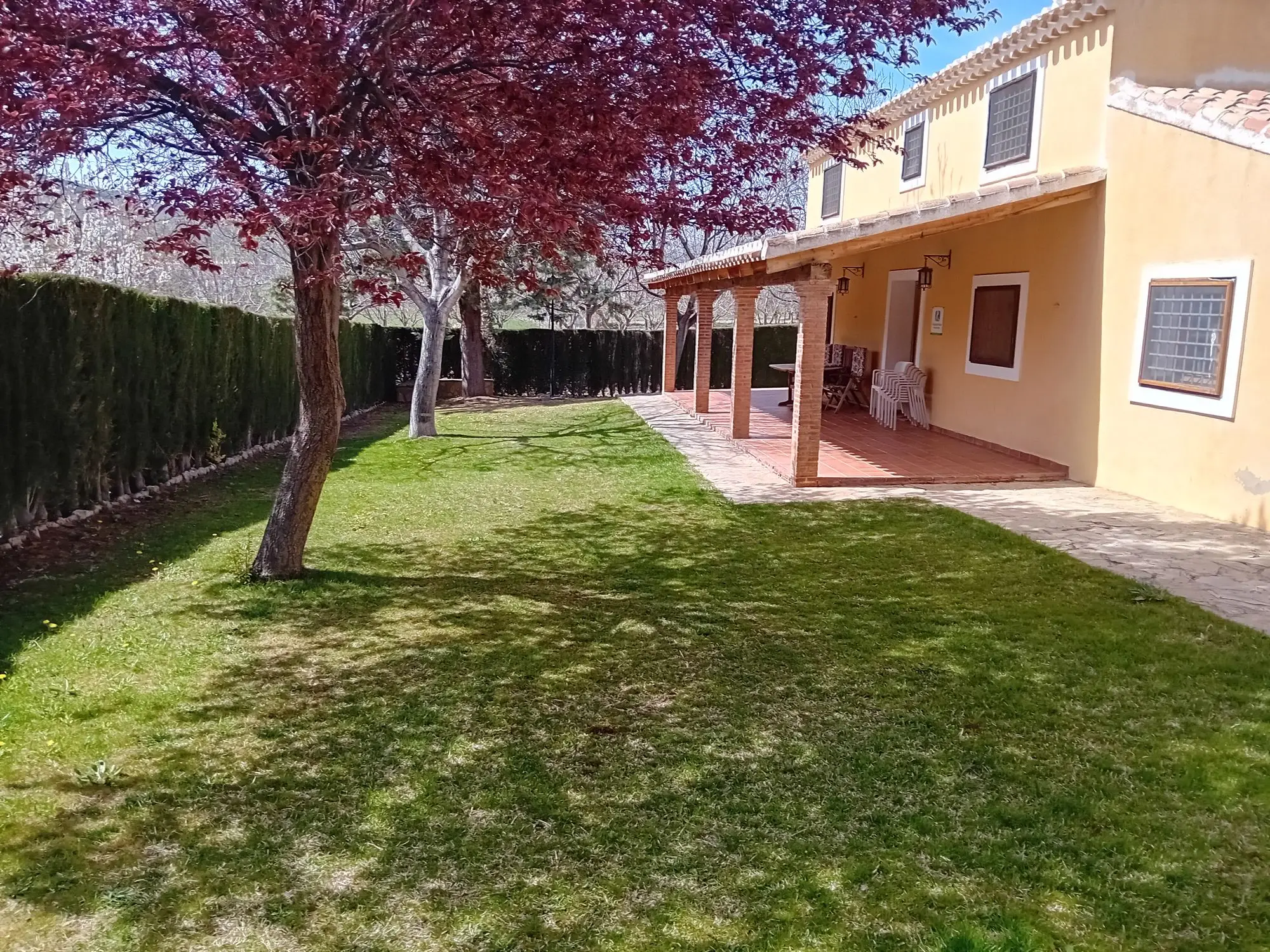 De cortijo ligt te midden van een goed onderhouden tuin, uitgerust met automatische irrigatie en gevoed door een eigen waterput. De tuin bevat een uitgebreide amandelboomgaard en is volledig omheind voor extra privacy.