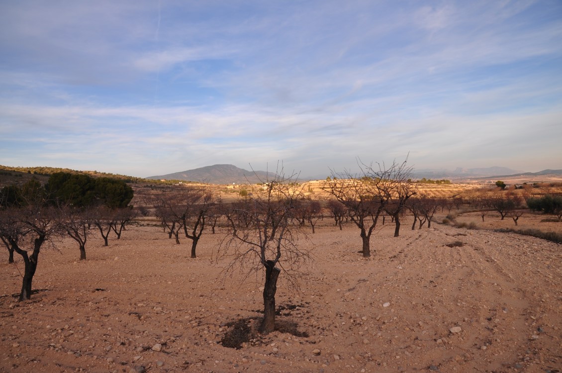 Plot of 38,000 m2 of rustic land planted with almond trees and part of the mountain. The property is located next to the natural park of the Sierra del Carche with unbeatable views. The almond tree plantation is currently yielding about 2,500 kg of almonds. The access is good and it is only 8 minutes from Pinoso.