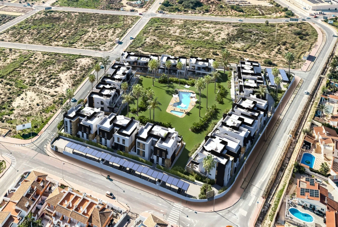 Comfortabel wonen in Ciudad QuesadaDe bungalows in Ciudad Quesada bieden een unieke kans voor ontspannen leven. Hier komen comfort en stijl samen voor een ideale woonervaring. Met 84 exclusieve woningen is er voor ieder wat wils die onder de zon wil leven.Deze bungalows beschikken over 2 ruime slaapkamers en 2 moderne badkamers. Perfect voor gezinnen of stellen die behoefte hebben aan privacy en ruimte. Elk huis is volledig gemeubileerd en voorzien van moderne faciliteiten, waaronder elektrische rolluiken en ingebouwde kasten die extra gemak bieden. De hoogwaardige afwerking zorgt ervoor dat u dagelijks luxe en comfort ervaart.Het porseleinen tegelwerk voegt een verfijnde uitstraling toe aan de ruimtes, terwijl airconditioning zorgt voor aangename temperaturen in elk seizoen. De ruime terrassen bieden de perfecte plek om te ontspannen en te genieten van het uitzicht op de goed onderhouden tuinen.Geniet van de voorzieningenDe bewoners kunnen genieten van een prachtig gemeenschappelijk zwembad, ideaal voor een verfrissende duik op warme dagen. De groene tuinen bieden een oase van rust en zijn perfect voor een ontspannen wandeling. Een eigen garage biedt ruimte voor uw voertuig en extra opslag, wat zorgt voor extra gemak en veiligheid.De uitnodigende tuinen en terrassen nodigen uit om te genieten van het buitenleven. Of u nu wilt zonnebaden of dineren in de buitenlucht, de setting is altijd ideaal. De gemeenschappelijke voorzieningen maken het wonen hier extra aantrekkelijk en comfortabel.Leven in Ciudad QuesadaCiudad Quesada staat bekend om zijn vriendelijke gemeenschap en biedt tal van uitstekende voorzieningen. Winkels, restaurants en recreatiemogelijkheden zijn dichtbij, waardoor het dagelijks leven eenvoudig en aangenaam is. Deze locatie is zeer aantrekkelijk voor internationale kopers die op zoek zijn naar een veilige en gastvrije omgeving.De nabijheid van diverse faciliteiten maakt het leven hier eenvoudig en aangenaam. De groene gebieden en het aangename klimaat maken het een perfecte plek voor een actieve levensstijl. Het is de ideale plek voor wie wil genieten van rust en comfort in een prachtige omgeving.Casas Palmeras Real Estate is uw partner bij het vinden van uw droomhuis in Spanje. Met jarenlange ervaring bieden wij persoonlijke service en deskundig advies. Neem vandaag nog contact met ons op en zet de eerste stap naar een zorgeloos leven onder de Spaanse zon!
