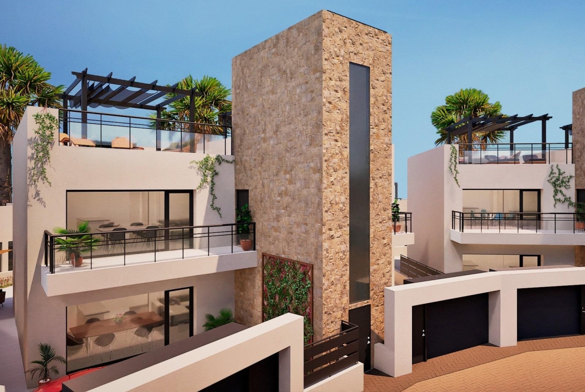 NEWLY BUILT BUNGALOWS IN FUENTE ALAMO, MURCIA Newly built residential complex of bungalows in Fuente Álamo, Murcia. Ground floor bungalows with private gardens and upper floor bungalows with private solariums. This location offers an exceptional natural environment, far from the hustle and bustle of big cities and the tourist pressure of the coast. Furthermore, we are committed to working from a sustainable development perspective, minimising our environmental impact and maximising integration with the local community. Here, your dreams of a peaceful and sustainable lifestyle become a reality. Imagine waking up every morning in a stunning natural setting, surrounded by serene landscapes and the unique beauty of the Murcian countryside. New construction projects prioritise energy efficiency, the use of environmentally friendly materials and harmonious integration with the rural environment. From property design to development planning, we strive to reduce our carbon footprint and promote responsible practices in all our operations. Development prioritising energy efficiency and community integration to create high-quality homes in harmony with the natural environment. Full installation of ducted air conditioning, hot/cold. Video intercom system. Colour-lacquered security entrance door with lock and anti-vandal security fittings. Cupboards with storage space, lined inside, lacquered in white. Kitchen furniture with appliances included. Hot water by aerothermal energy. Electric blinds. Pergolas in solariums. Photovoltaic solar panel system with storage tank. Possibility of making modifications to the property, subject to prior assessment and approval by both parties. Fuente Álamo de Murcia is a town and municipality in the Region of Murcia, in southern Spain. It is located 22 km northwest of Cartagena and 35 km southwest of Murcia. The town is located in the Mar Menor basin, surrounded by the Algarrobo, Los Gómez, Los Victorias and Carrascoy mountain ranges. The water from these mountains flows down into the Rambla de Fuente Álamo and then into the Mar Menor. Fuente Álamo is 30 minutes from Murcia – Corvera airport. Nearest shops 6 km away.