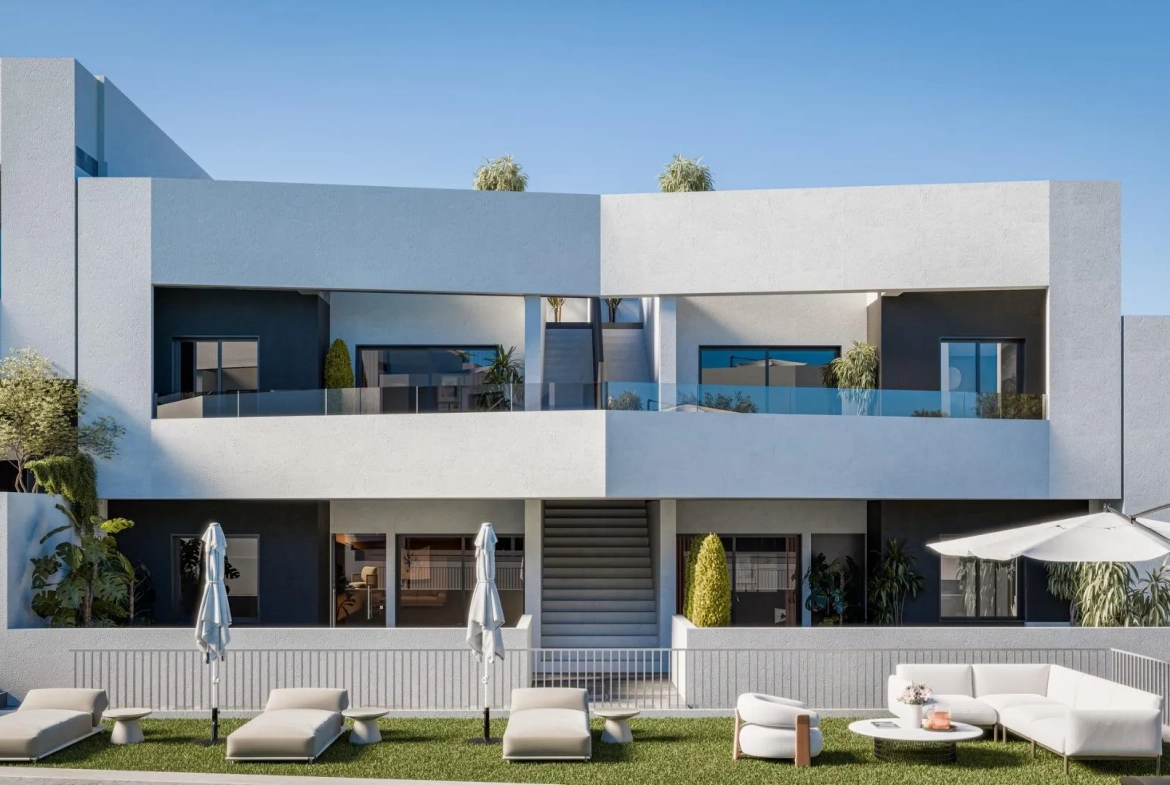 Nieuwbouwwoningen in San Miguel de Salinas met 2 gemeenschappelijke zwembaden Mediterrane levensstijl in een natuurlijke omgeving Ontdek deze moderne nieuwbouwwijk met bungalows in San Miguel de Salinas, een plaats in het zuiden van de provincie Alicante, in de regio Vega Baja del Segura. Deze charmante gemeente combineert de nabijheid van de zee met de rust van de natuur, waardoor het een ideale plek is voor zowel permanente bewoning als vakantie. Woonmogelijkheden voor alle levensstijlen Het wooncomplex biedt bungalowappartementen met 2 of 3 slaapkamers, verdeeld over twee opties: Begane grond met privétuin en berging Bovenverdieping met privéterras Elke woning is ontworpen met een moderne en functionele inrichting, die comfort, natuurlijk licht en buitenruimtes biedt om het hele jaar door van het mediterrane klimaat te genieten. Gemeenschappelijke ruimtes voor het hele gezin Dit wooncomplex is volledig omheind en beschikt over uitstekende gemeenschappelijke ruimtes: 2 grote gemeenschappelijke zwembaden voor volwassenen en kinderen Meer dan 2.600 m² aangelegde groene zones Speeltuin Deze faciliteiten maken het wooncomplex tot een ideale plek voor gezinnen, stellen en gepensioneerden die op zoek zijn naar levenskwaliteit in een veilige en ontspannen omgeving. Moderne kwaliteiten en energie-efficiëntie De woningen zijn voorzien van hoogwaardige materialen en zorgvuldige afwerkingen: Volledig ingerichte keuken Buitenkozijnen met thermische onderbreking en dubbele beglazing Beveiligde voordeur Badkamermeubels inbegrepen Voorbereiding voor airconditioning in woonkamer en slaapkamers Uitstekende ligging dicht bij golf, stranden en voorzieningen San Miguel de Salinas is strategisch gelegen in de buurt van toeristische en natuurgebieden: Golfbanen zoals Vistabella, Las Colinas en Campoamor op minder dan 10 km Stranden van Orihuela Costa op 11 km Lagunes van Torrevieja en La Mata op slechts 8 km Winkelcentrum La Zenia Boulevard op 9 km Luchthaven Alicante-Elche op 58 km (35 minuten met de auto) Internationale luchthaven Murcia op 63 km (1 uur met de auto) Uw nieuwe thuis aan de Costa Blanca Deze woningen zijn een uitstekende kans voor wie op zoek is naar kwaliteit, comfort en een goede ligging. Neem nu contact met ons op voor meer informatie of om een bezoek te plannen en de eerste stap te zetten naar uw leven aan de Costa Blanca.