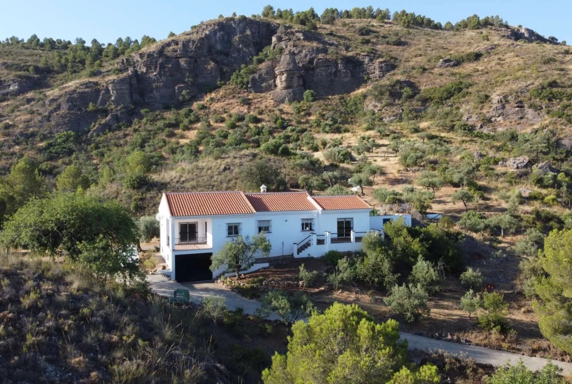 Set in an elevated position on Sierra El Hacho with sweeping views over the picturesque valley and toward the dramatic Sierra Huma, this beautifully constructed countryside property offers both tranquility and opportunity. Located just a short seven-minute drive from the historic town of Álora, the home occupies a generous 15,000-square-metre plot and provides an outstanding combination of privacy, modern comfort, and development potential. Built to an excellent standard by the well-respected builder Bilba, the property also benefits from a Licence of First Occupation (LPO), ensuring full legal status and peace of mind for future owners.