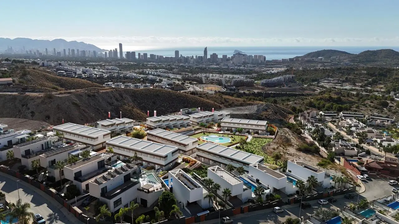 Dit nieuwe woonproject met herenhuizen met 3 slaapkamers, 2 badkamers en 1 gastentoilet ligt in Balcon de Finestrat, een rustige en goed onderhouden wijk aan de Costa Blanca. Op slechts enkele minuten van Benidorm en naast de golfbaan Puig Campana biedt deze locatie een ideale balans tussen natuur, zee en essentiële voorzieningen. De omgeving staat bekend om zijn prachtige berglandschap, gemakkelijke toegang tot recreatiegebieden en een aangenaam klimaat het hele jaar door.