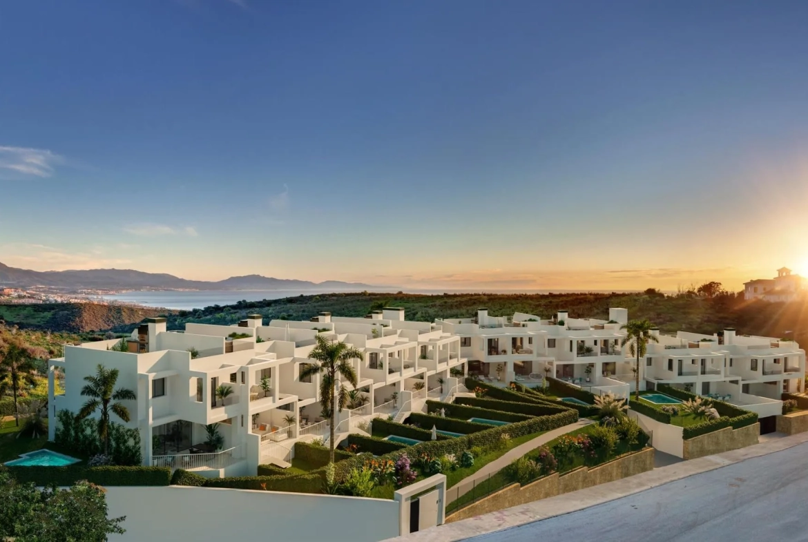 NIEUWBOUW VILLA IN LAS ROCAS EN MANILVA Nieuwbouwwijk van 16 herenhuizen en halfvrijstaande villa’s gelegen in Las Rocas en Manilva, aan de Costa del Sol. In deze woonwijk geniet je van het beste en meest spectaculaire uitzicht op zee, dat zich uitstrekt tot Gibraltar en de Marokkaanse kustlijn met de beste oriëntatie. De ideale omgeving om te genieten van de authentieke mediterrane levensstijl. Moderne woningen met 3 slaapkamers, 2 badkamers, open keuken met ruime woonkamer, inbouwkasten, terrassen, solarium, privétuin en kelder met garage. Wooncomplex volledig omheind en afgesloten. De gemeenschappelijke ruimtes zijn voorzien van LED-verlichting voor maximale energie-efficiëntie en opritten. Privé parkeerplaats voor twee auto’s. U kunt genieten van gemeenschappelijke ruimtes: het grote zwembad zal worden voorzien van moderne technologie van de nieuwste generatie. Er zal ook een paddle tennisbaan, kinderruimte. Residentieel gelegen op de perfecte locatie tussen Marbella en Sotogrande, in het hart van de Costa del Sol en zeer dicht bij het strand. Gemakkelijk bereikbaar met uitstekende wegverbindingen die direct aansluiten op de N340 bij km150. Gelegen op slechts 1 uur van het internationale vliegveld van Malaga en 25 minuten van het vliegveld van Gibraltar. Omringd door groene gebieden en de beste golfbanen van Europa. Op slechts 5 minuten afstand ligt La Reserva Club in Sotogrande, een geweldig recreatiegebied met golf, paardrijden en een resort met restaurantfaciliteiten, een wit zandstrand en een lagune voor sportactiviteiten.