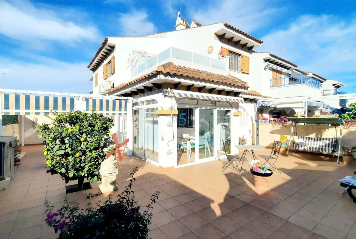 5 Real Estate is delighted to market this beautifully presented 2-bedroom, 2-bathroom house, set on a large corner plot in Mil Palmeras with communal pool and roof terrace