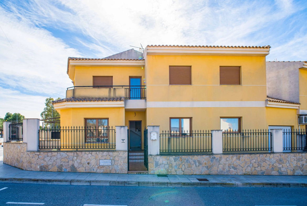 Deze moderne hoekwoning ligt op een verhoogde positie in het dorp Pinoso en biedt een fijne combinatie van ruimte, licht en uitzicht over de omgeving. De woning is nooit bewoond geweest en is verdeeld over twee woonlagen, met meerdere buitenruimtes en een privé garage. Door de hoekligging profiteert de woning van extra lichtinval en een open gevoel, zowel binnen als buiten.
