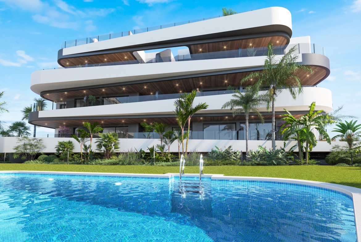 Je hebt de keuze uit verschillende type appartementen die passen bij uiteenlopende woonwensen. De appartementen op de begane grond beschikken over een groot privéterras dat ideaal is voor een leven in de buitenlucht. De appartementen op de tussenverdieping bieden een onderhoudsarm terras, perfect voor wie gemak en rust zoekt. De appartementen op de bovenste verdieping beschikken over een royaal dakterras met panoramisch uitzicht over de zee, de golfbaan en de groene omgeving. Elk appartement beschikt over 2 of 3 slaapkamers, 2 badkamers, open leefruimtes, pre-installatie voor airconditioning, inbouwkasten en elektrische rolluiken.
