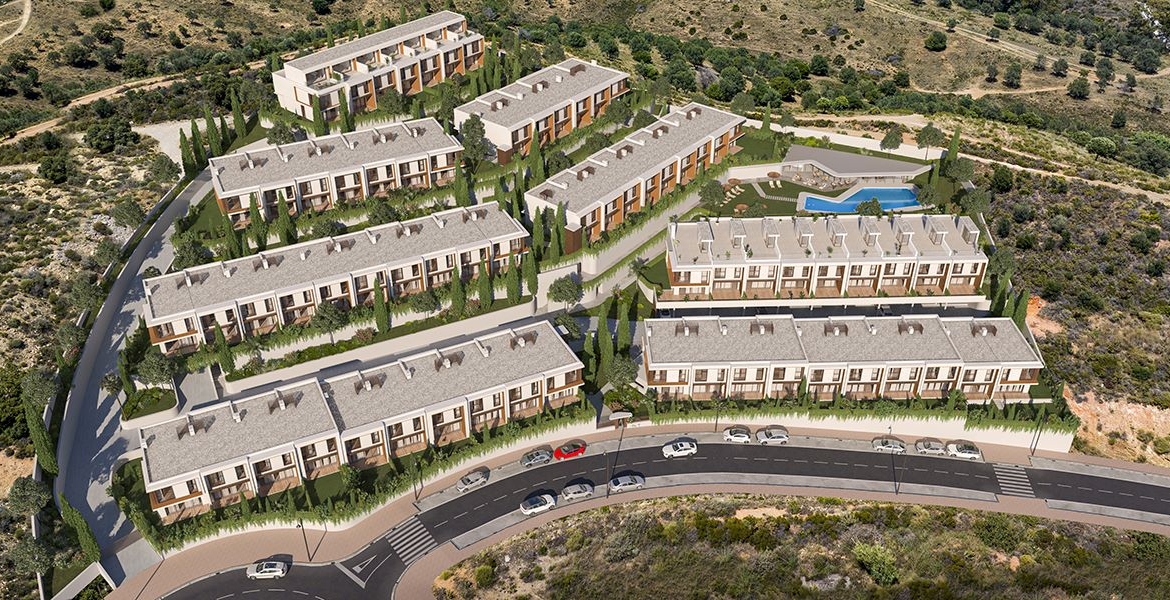 Gelegen in het charmante gebied van La Cala de Mijas, biedt dit exclusieve wooncomplex 19 rijtjeshuizen die zijn ontworpen voor degenen die op zoek zijn naar de perfecte balans tussen comfort en stijl. Met uitzicht op zee is elke woning ontworpen om het natuurlijke licht te maximaliseren en een gastvrije en moderne sfeer te bieden. De nabijheid van de zee, op slechts 2 km, maakt het mogelijk om te genieten van de zeebries en ontspannende wandelingen langs het strand. Bovendien ligt de luchthaven op 33 km afstand, wat de toegang tot internationale verbindingen vergemakkelijkt. Deze bevoorrechte locatie combineert de rust van een natuurlijke omgeving met het gemak van nabijheid van diensten en recreatieve activiteiten.