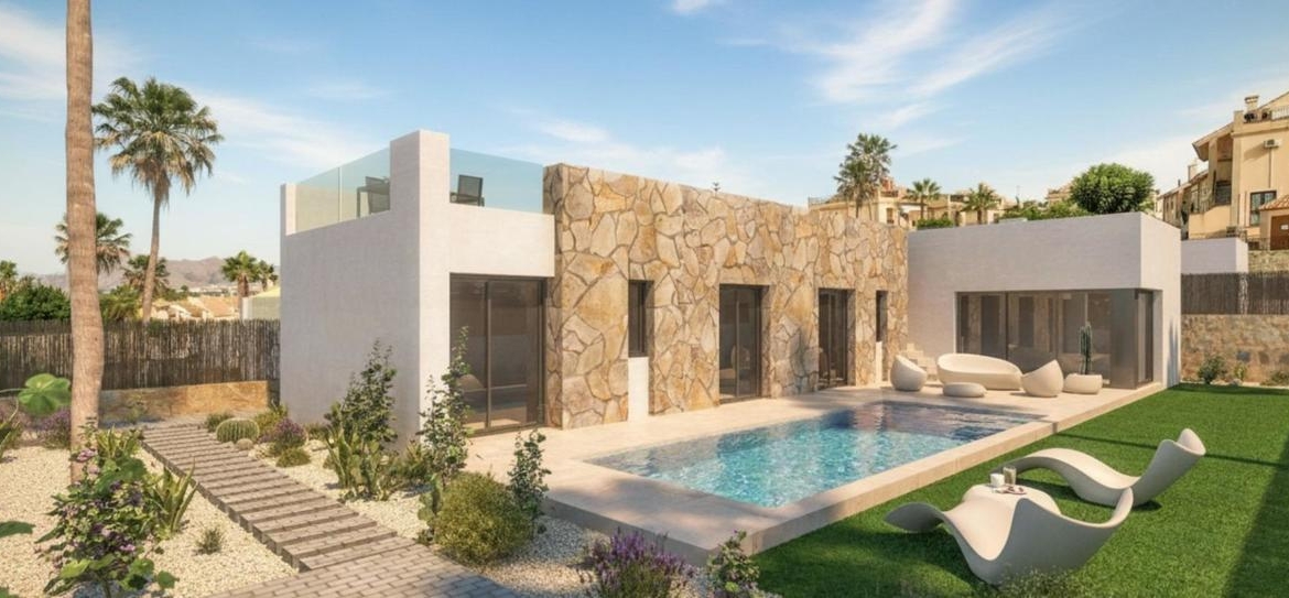 Elke villa heeft 3 ruime slaapkamers en 2 moderne badkamers en is gebouwd op een royaal perceel van meer dan 400 m². De buitenruimtes omvatten een privézwembad, een aangelegde tuin met automatische irrigatie, parkeergelegenheid op het perceel en een groot privéterras, ideaal om het hele jaar door van de zon te genieten.