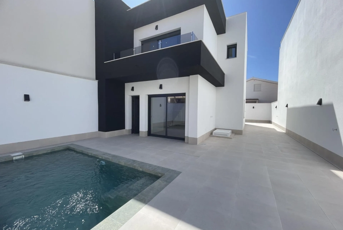 Nieuwe villa’s te koop in Las Heredades, Costa Blanca Moderne villa’s in een rustige en goed bereikbare omgeving Ontdek deze exclusieve ontwikkeling van vijf eigentijdse villa’s in Las Heredades, een charmant en rustig dorp nabij Rojales en Almoradí, in het hart van de zuidelijke Costa Blanca. Deze rustige woonwijk biedt een authentieke Spaanse levensstijl omringd door natuur, terwijl alle voorzieningen, golfbanen en de Middellandse Zee stranden van Guardamar del Segura en Torrevieja op slechts 12 km afstand liggen. Elegant en functioneel ontwerp Deze nieuw gebouwde villa’s hebben een modern mediterraan ontwerp dat comfort, stijl en functionaliteit combineert. Elke woning is verdeeld over twee verdiepingen en biedt lichte en ruime interieurs die naadloos aansluiten op de buitenruimtes. De villa’s beschikken over 3 slaapkamers en 3 badkamers, een open keuken met volledig geïntegreerde apparaten, en een ruime woon-eetkamer met directe toegang tot het terras en de tuin. Gebouwd met hoogwaardige materialen en aandacht voor detail, bieden deze woningen het hele jaar door een comfortabele en energiezuinige levensstijl. Privé buitenruimtes en hoogwaardige voorzieningen Elke villa is gebouwd op een eigen perceel met: een privézwembad (6×3 m), een aangelegde tuin met automatisch irrigatiesysteem, privéparkeerplaats voor twee voertuigen, terrassen en zitgedeeltes buiten die perfect zijn om van het Mediterrane klimaat te genieten. Aanvullende kenmerken zijn onder andere airconditioning via leidingen, LED-verlichting binnen en buiten, inbouwkasten in alle slaapkamers, en een volledig ingerichte keuken met moderne apparatuur. Een perfecte locatie voor ontspannen mediterraan wonen Las Heredades is ideaal voor wie rust zoekt zonder afstand te doen van nabijheid tot stranden, golf en recreatiegebieden. Met een traditionele Spaanse sfeer en uitstekende wegverbindingen is dit gebied perfect voor zowel permanent wonen als vakanties aan de Costa Blanca. Afstanden tot belangrijke punten van interesse De stranden van Guardamar del Segura liggen op 12 km, het centrum van Rojales op 3 km, Almoradí op 2 km, La Marquesa Golf op 5 km, Torrevieja op 15 km, de internationale luchthaven van Alicante op 40 km (ongeveer 45 minuten met de auto), en de luchthaven van Murcia (Corvera) op 50 km.
