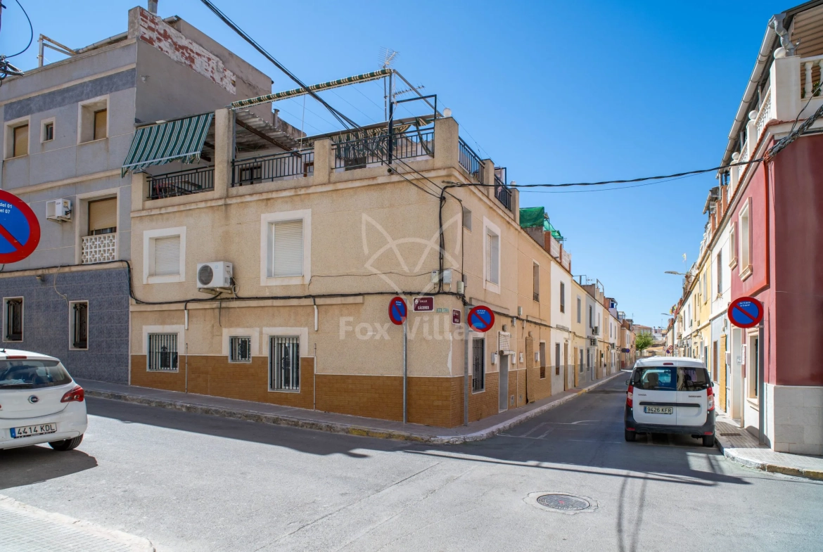 In het levendige Aspe (Alicante) staat deze hoekwoning met drie slaapkamers en twee badkamers, op loopafstand van winkels, restaurants, scholen en alle dagelijkse voorzieningen. Aspe is een gezellige stad met een wekelijkse markt en uitstekende verbindingen: binnen 25 minuten rijdt u naar Alicante-stad, het vliegveld en de kust.De woning biedt een royale woonkamer en een ruime keuken, plus een klein dakterras voor een eigen buitenplek. Dankzij de hoekligging valt extra daglicht binnen en kunt u direct voor de deur parkeren. De woning is aangesloten op alle nutsvoorzieningen en instapklaar, maar kan naar wens gemoderniseerd worden. Een ideale keuze voor wie een permanent huis, een vakantieadres of een investering zoekt in een levendige Spaanse stad.