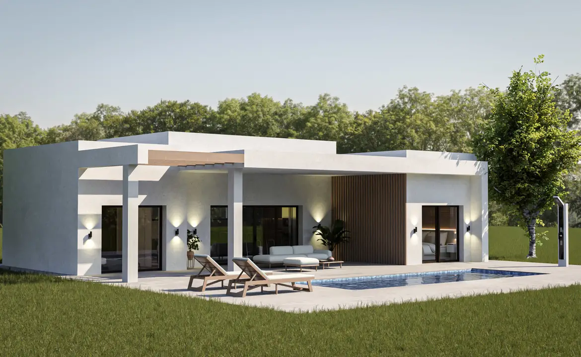 Deze eigendommen zullen standaard veel extra’s bevatten, vooraf geïnstalleerde pre installatie van airconditioning (warm/koud) voor de wintermaanden. Privé zwembad met geplaveid terras rond het zwembad en een onderhoudsarme tuin en een oprit met parking.