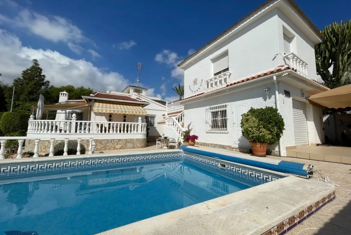 Uitstekende locatie, op loopafstand van het centrum van Ciudad Quesada. Privéterrein met verzorgde tuin, zwembad en meerdere terrassen. Lichte woonkamer met open haard, eetkamer en volledig uitgeruste keuken. Slaapkamers met ingebouwde kasten, inclusief een aparte gastenkamer met eigen badkamer. Garage, privéparkeerplaats en flexibele ruimtes met mogelijkheden tot aanpassing. Solarium met uitzicht, ideaal om van de Middellandse Zee zon te genieten. Dicht bij La Marquesa Golf, de stranden van Guardamar (15 min.) en de luchthaven van Alicante (35 min.).