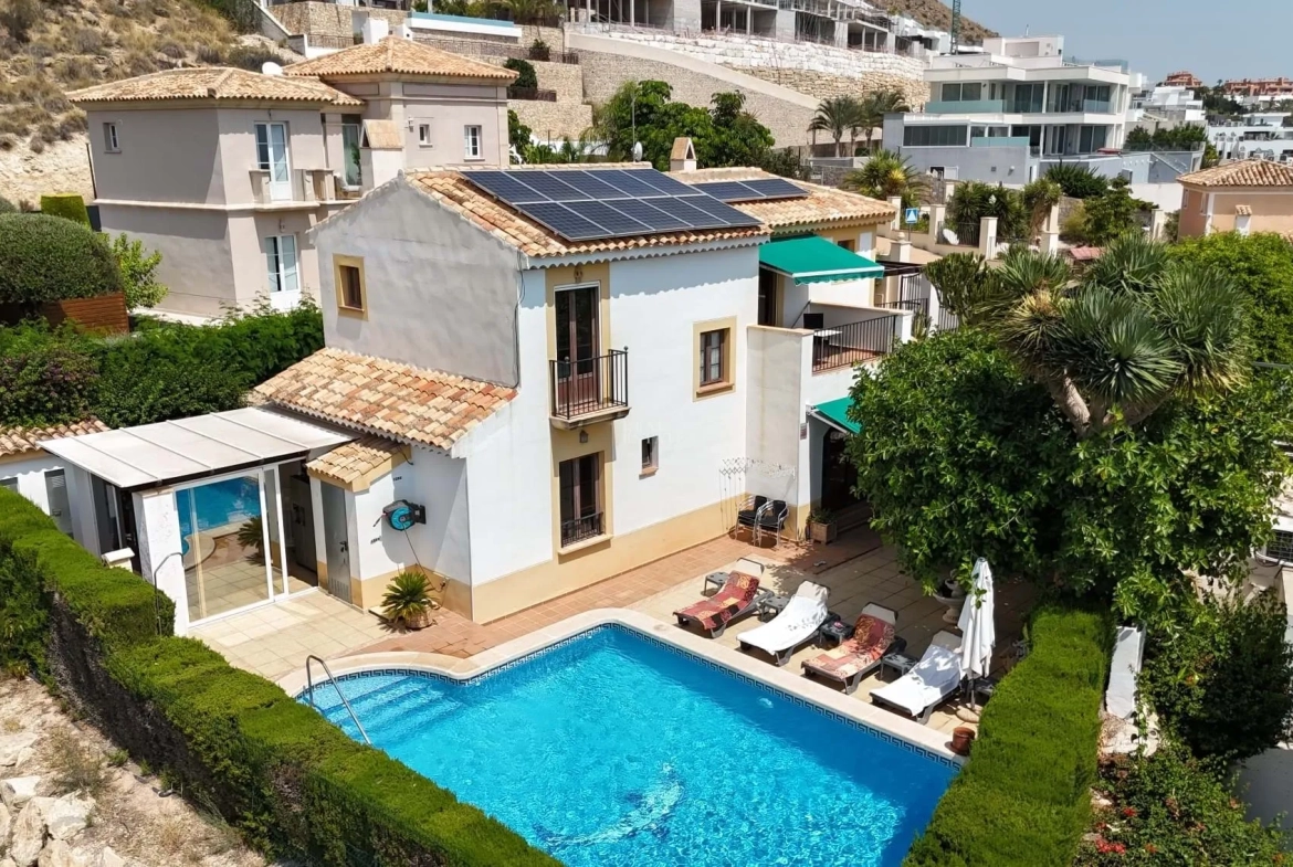 Situated in the highly desirable area of Finestrat on the Costa Blanca, this beautifully presented detached family villa enjoys elevated sea views and offers a perfect blend of space, privacy, and Mediterranean living. Built in 2005, the property has been thoughtfully designed for comfortable year-round living and is ideal as either a permanent residence or a luxurious holiday retreat.
