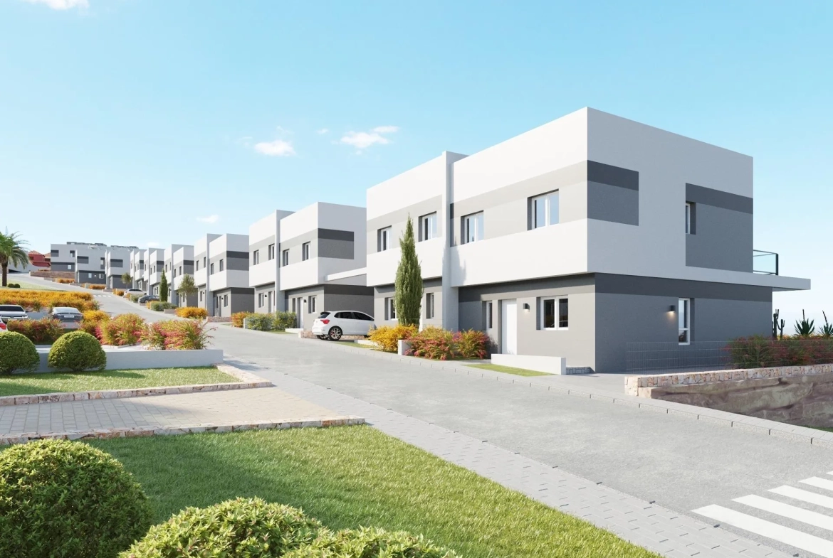 NIEUWBOUW VILLA’S IN FINESTRAT Nieuwbouw vrijstaande en halfvrijstaande villa’s in Balcon de Finestrat. Prachtige villa’s met 4 slaapkamers, 3 badkamers, open keuken met zithoek, inbouwkasten, privétuin met zwembad en parkeerplaats. Installatie van airconditioning (warm/koud). Het wooncomplex bestaat uit een gemeenschappelijk zwembad voor volwassenen met kinderbad en solarium, parkeerplaats voor fietsen, kinderspeelplaats betegeld met doorlopende veiligheidsbestrating. Residentieel complex perfect gelegen in een natuurlijke enclave van de Costa Blanca en biedt een ongelooflijk uitzicht op de skyline van Benidorm, de baai van Finestrat en El Puig Campana. Benidorm ligt op slechts vijf minuten rijden van de woningen en biedt alle voorzieningen die je nodig hebt, zoals winkels, bars, restaurants, supermarkten, banken, apotheken en verschillende internationale privéscholen. Vlakbij de stranden van Levante, Poniente en Cala de Finestrat, met een lengte van meer dan 6 km die tot de beste stranden van Europa behoren en bekroond zijn met blauwe vlaggen door de Europese Unie. Alle recreatieve diensten, zoals de themaparken van Aqua Natura, Terra Mítica, Terra Natura, Aqualandia en Mundomar, Sierra Cortina en Villaitana Golfbanen, wandelen en klimmen in Puig Campana een onvergelijkbare natuurlijke omgeving of genieten van nautische sporten. Afstand tot de zee 4 km, tot de luchthaven 26 km en tot de golf 1km. Complex gelegen op 40 minuten van de luchthaven van Alicante.