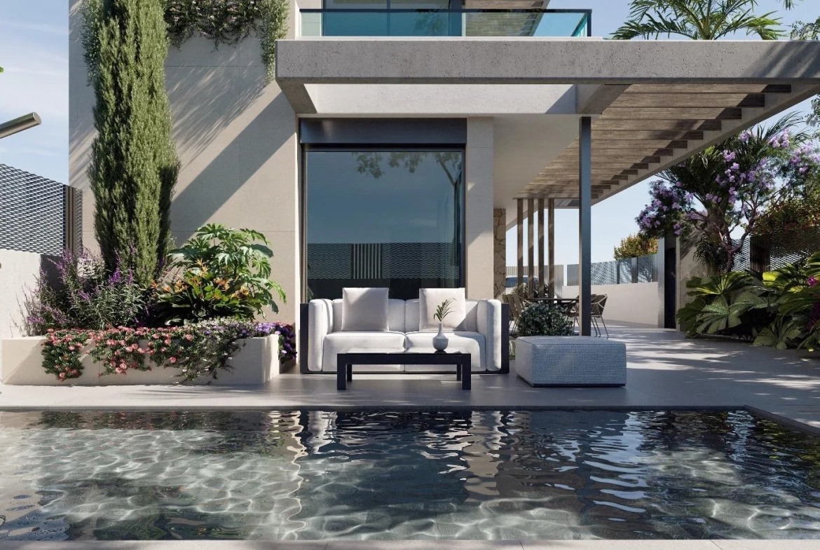 NIEUWBOUW VILLA’S IN OMHEIND PRIVÉRESORT IN PROVINCIE MURCIA Nieuwbouwvilla’s in een omheind privéresort in de regio Murcia, omringd door uitstekende golfbanen en op slechts 10 minuten van de zandstranden van de Mar Menor Zee. De villa bestaat uit 3 verdiepingen en heeft 3 slaapkamers, 3 badkamers, open keuken en woon-eetkamer, inbouwkasten, kelder, privétuin met zwembad en parkeerplaats. Gelegen in een afgesloten resort, met een hoofdingang en 24 uur bewaking. Het resort is ontworpen rond een indrukwekkend groen gebied van 126.000 m2. Het bestaat uit wandel- en fietspaden, sportfaciliteiten, paddle- en tennisbanen, een minigolfbaan, tuinen, hondenparken, recreatiegebieden, clubhuis…. Ook in het centrale gebied ligt het juweel van het resort, een kristalhelder kunstmatig meer van bijna 17.000 m2 wateroppervlak, omringd door witte zandstranden en palmbomen, dat een stukje Caribisch gebied naar de regio Murcia brengt. Er zijn 2 eilanden in het meer, waarvan één met een eigen bar, en er zijn ook “strand Chiringuitos” verspreid over het meer. Het resort is strategisch gelegen op minder dan 4 km van het strand en de stad Los Alcázares, waar je verschillende watersporten kunt beoefenen, omringd door verschillende golfbanen en de stad Cartagena op minder dan 15 minuten rijden en 22 km van de luchthaven van Murcia, waardoor een breed cultureel, gastronomisch en sportief aanbod binnen handbereik ligt.