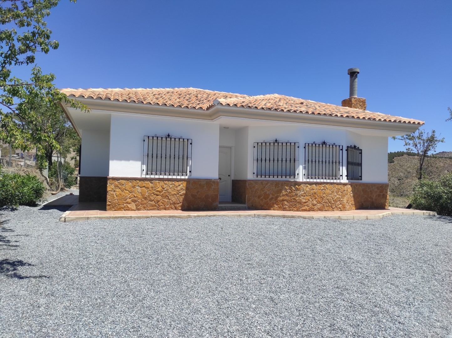 De villa is gelijkvloers gebouwd en valt op door het indrukwekkende uitzicht over de Almanzora-vallei en de omliggende bergen. Bij binnenkomst kom je in een ruime hal die leidt naar een mooie woonkamer met open haard, perfect voor de koelere avonden. Vanuit de woonkamer bereik je de keuken, die aansluit op een veranda met zicht op het achterste deel van het perceel, een fijne plek om te genieten van de natuur en het zachte klimaat.