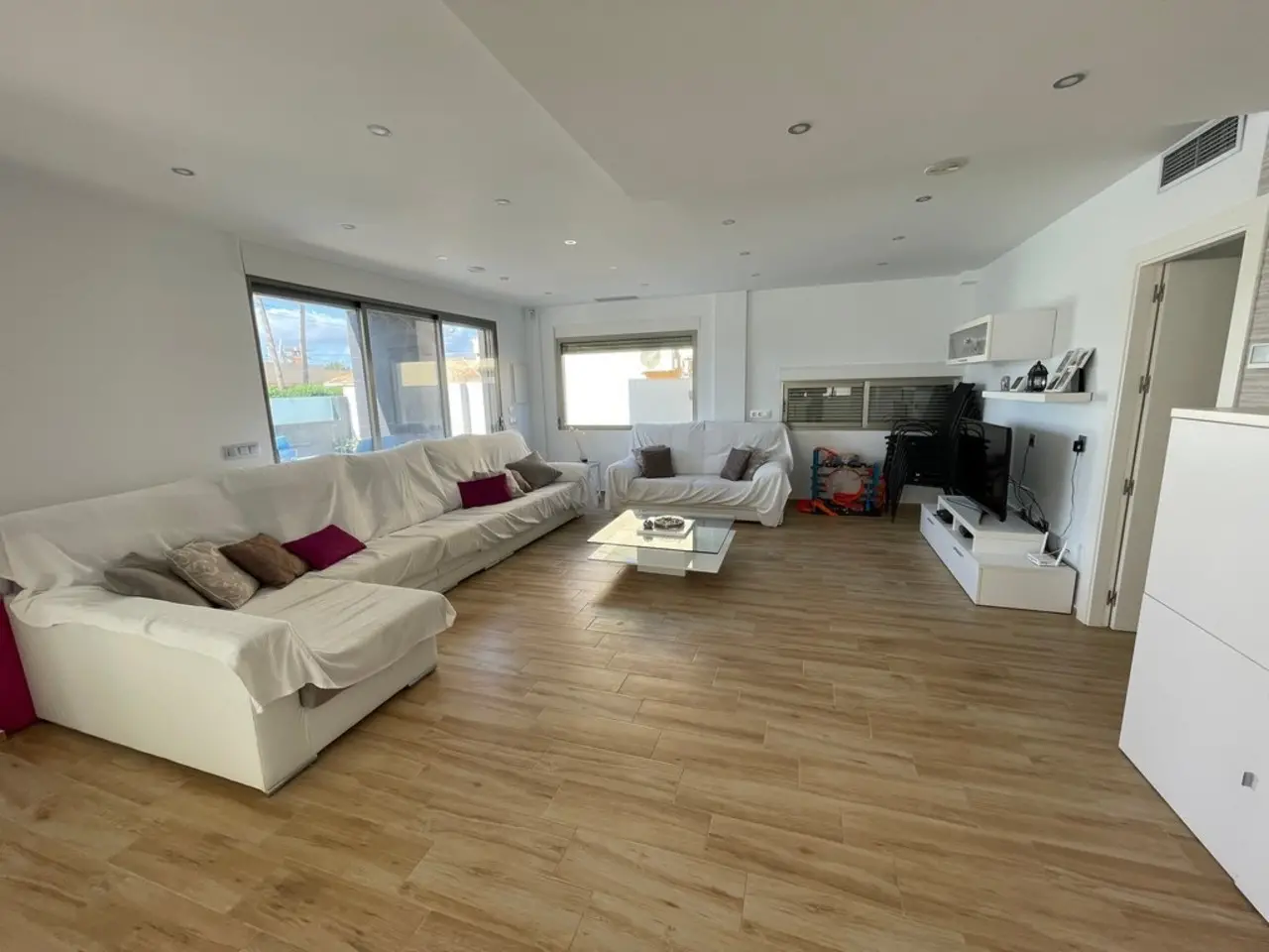Prachtige moderne villa nabij Playa Mar de Cristal – een unieke kansDeze prachtig ontworpen villa met 6 slaapkamers en 2 badkamers staat op een ruim perceel van 408 m² en biedt een mix van moderne stijl en ultiem comfort. Dit huis is gebouwd in 2016 en is perfect voor gezinnen of mensen die op zoek zijn naar een ruim, rustig toevluchtsoord aan de kust.Bij binnenkomst via de beveiligde poort, wordt u begroet door een privé betegeld terras dat uitkomt op een sprankelend privé zwembad compleet met een buitendouche, ideaal voor die warme zomerdagen. Voor entertainment biedt de barbecueplek buiten met een ingebouwde gootsteen de perfecte ruimte om buiten te eten met vrienden en familie.Binnen is de villa volledig voorzien van airconditioning met een modern kanaalsysteem dat het hele jaar door comfort garandeert. Het hart van het huis beschikt over een ruime woonkamer met een open keuken, perfect voor bijeenkomsten en ontspanning. De indeling is slim ontworpen, met twee gangen, die elk naar 3 ruime slaapkamers en 1 badkamer leiden, wat privacy en gemak biedt. Elke slaapkamer heeft een eigen ingebouwde kast, wat de opbergruimte maximaliseert.De villa beschikt ook over een tuinhuisje met voldoende ruimte voor opslag, evenals parkeergelegenheid voor ten minste 3 auto’s op het terrein. Daarnaast is er voldoende parkeergelegenheid op straat voor gasten.Een interessant kenmerk van dit pand is de mogelijkheid om een tweede verdieping te bouwen, aangezien het oorspronkelijke plan voorzag in het creëren van een extra woning. Dit is dus een fantastische investeringsmogelijkheid voor uitbreiding.Het meubilair is niet bij de verkoop inbegrepen, maar sommige items kunnen wel onderhandeld worden.Deze villa ligt op slechts 150 meter van het prachtige strand Playa Mar de Cristal aan de oevers van de Mar Menor en biedt het beste van het leven aan de kust in een rustige omgeving. Bovendien zijn voorzieningen zoals winkels, restaurants en diensten op korte loopafstand, waardoor alledaags gemak deel uitmaakt van de levensstijl.Mis deze unieke kans niet om eigenaar te worden van een moderne, ruime villa in een van de meest gewilde gebieden van de Mar Menor.Uw droomhuis wacht op u!