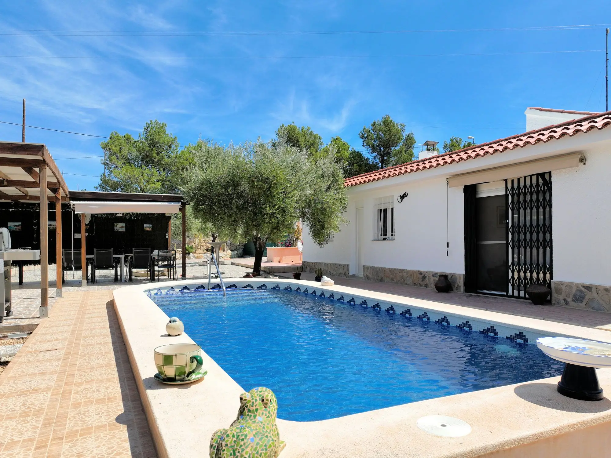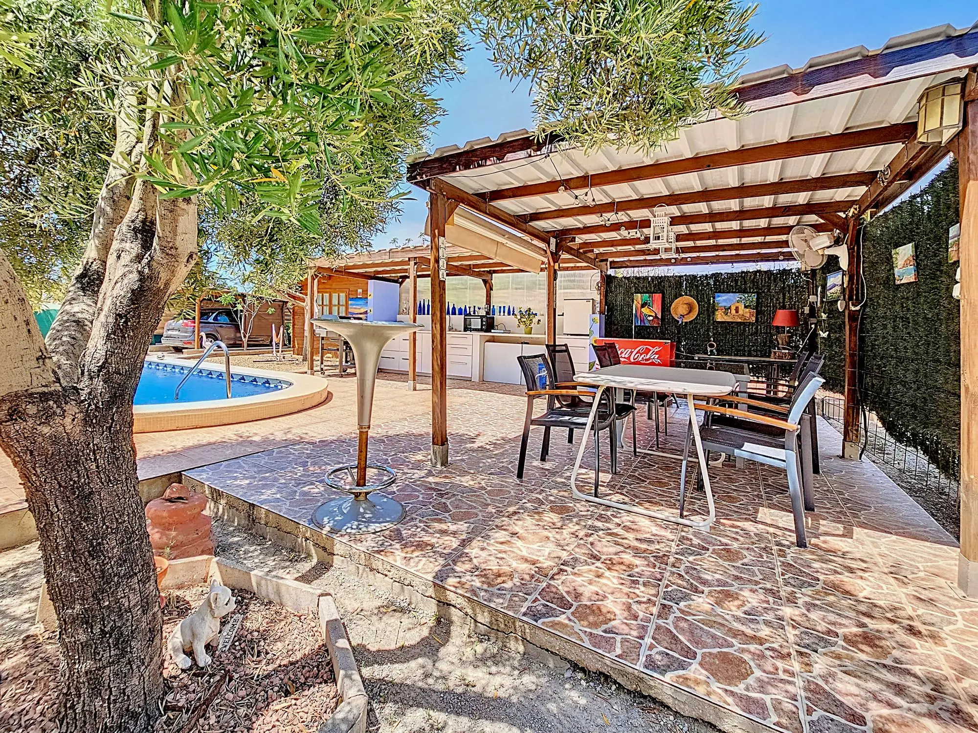 Het perceel biedt alles voor een heerlijk buitenleven. U vindt er een groot zwembad, een carport, een tuinhuis en een royale buitenkeuken, perfect voor lange zomeravonden. Er zijn diverse zitjes en terrassen, zowel overdekt als in de open lucht, zodat u altijd kunt kiezen tussen zon of schaduw. De tuin is goed onderhouden met volwassen fruitbomen, prachtige bougainvillea’s in verschillende kleuren en een groene omgeving.