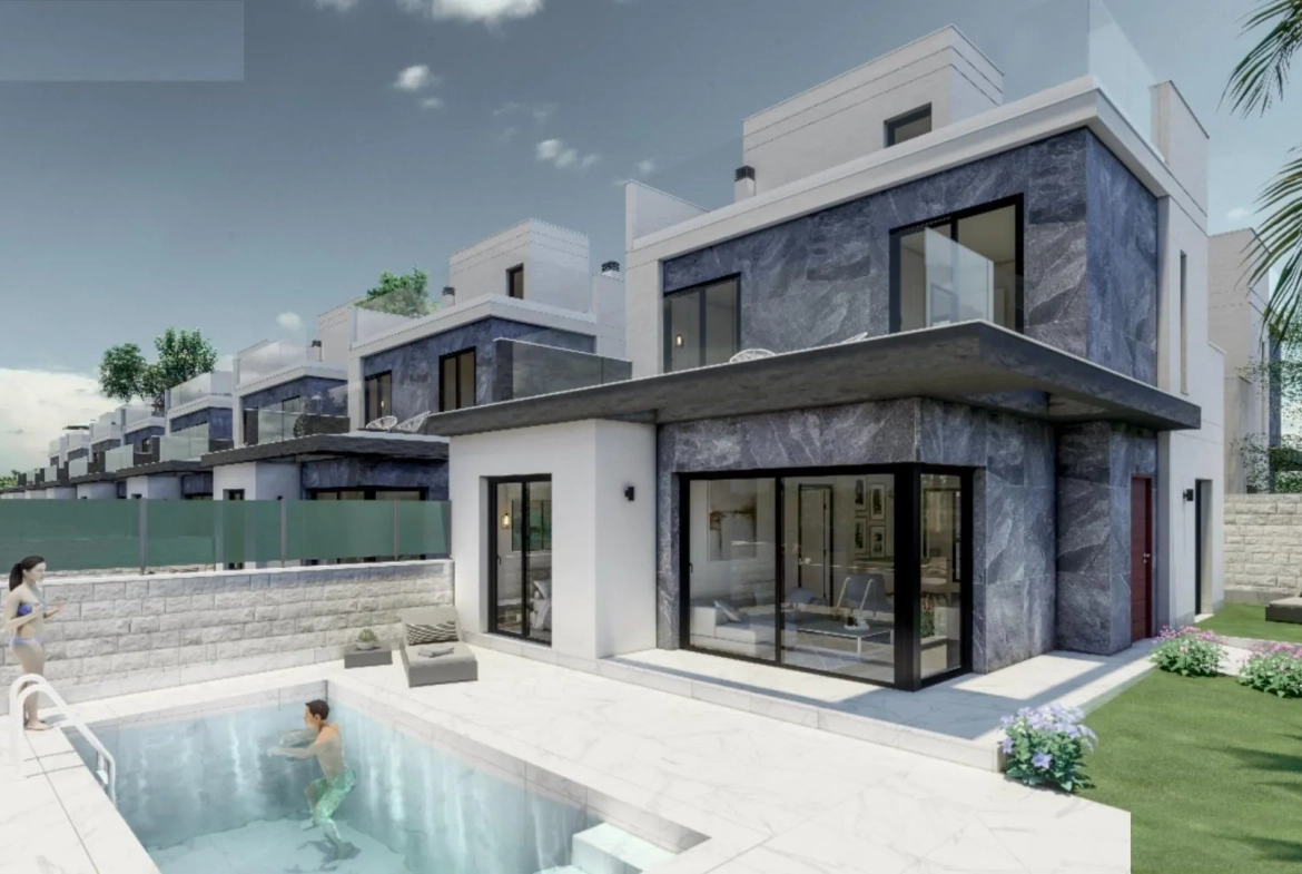 Nieuwe villa’s in Pilar de la Horadada Locatie en ontwerp Deze nieuwbouwvilla’s zijn gelegen in Pilar de la Horadada. De woningen zijn verdeeld over twee verdiepingen en beschikken over drie slaapkamers, twee badkamers en een gastentoilet. De open keuken is verbonden met de woonkamer. Verder is er een kelder, terras, solarium en een tuin met een privézwembad. Er is privéparkeergelegenheid in de kelder. Interieur en voorzieningen De slaapkamers zijn uitgerust met ingebouwde kasten met wit gelakte deuren van vloer tot plafond, voorzien van lades, hangrails en een hoge opslagruimte. Er is een ingerichte kleedkamer. Voorgeïnstalleerde airconditioning (split) is aanwezig in de slaapkamers en de woonkamer. De woning heeft overal vloerverwarming. Omgeving De villa’s liggen op slechts enkele meters van alle voorzieningen en het centrum. Pilar de la Horadada is een typisch Spaans dorp in het zuidelijkste deel van de Costa Blanca. De hoofdstraat biedt supermarkten, diverse winkels, restaurants en bars en enkele mooie pleinen. De prachtige stranden van Torre de la Horadada en Mil Palmeras liggen op slechts vijf minuten afstand. Pilar de la Horadada heeft tevens een goed ontwikkeld netwerk van fiets- en wandelpaden en biedt tal van sportfaciliteiten. De 18-holes golfbaan Lo Romero ligt op korte rijafstand van het dorp. De luchthavens van Corvera (Murcia) en Alicante zijn respectievelijk 40 en 55 minuten rijden.
