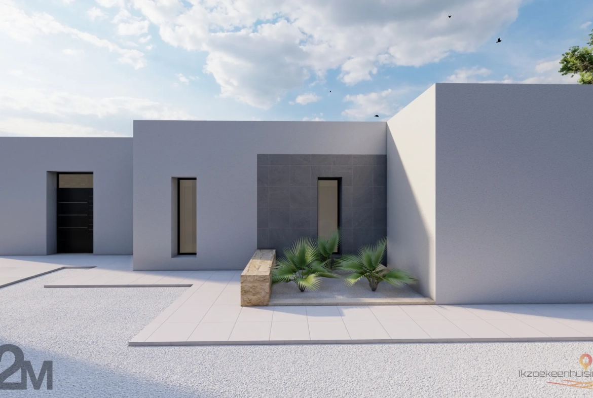 Deze woning betreft een voorbeeldontwerp van een vrijstaande nieuwbouwwoning die gerealiseerd kan worden op een perceel naar keuze. Het getoonde ontwerp en de bijbehorende prijs dienen uitsluitend als uitgangspunt. De koper is niet gebonden aan dit specifieke ontwerp: zowel de indeling, het woonoppervlak als de afwerking kunnen volledig worden aangepast aan uw persoonlijke wensen en behoeften. Ontwerp- en prijsflexibiliteit De vermelde prijs is gebaseerd op het aantal vierkante meters van het getoonde voorbeeldontwerp. Kiest u voor een grotere woning, dan stijgt de totale prijs. Kiest u voor een kleinere woning, dan daalt de totale prijs. De uiteindelijke prijs is mede afhankelijk van de gekozen materialen en het gewenste afwerkingsniveau. Wanneer wordt gekozen voor materialen en afwerkingen binnen het voorgestelde budget, blijft de prijs ongewijzigd. Dit concept biedt u de vrijheid om een woning te realiseren die perfect aansluit bij uw smaak, levensstijl en budget. Woningomschrijving Dit unieke voorbeeldontwerp beschikt over: 3 slaapkamers 2 badkamers Een ruime, lichte woon- en eetkamer Directe toegang tot het terras en het privézwembad De woning heeft een totale woonoppervlakte van circa 160 m² en kenmerkt zich door een modern en uniek ontwerp, met veel aandacht voor licht, ruimte en comfort. Wat is inbegrepen Perceel (t.w.v. €30.000 in de regio’s Pinoso, La Romana en Jumilla; volledige waarde in Catral) Elektriciteit via zelfvoorzienende zonne-installatie en waterdeposit van 10.000 L (Sommige percelen bieden de mogelijkheid van reguliere stroom- en wateraansluiting) Architectendiensten Geologische studie Kwaliteitsstudie / kwaliteitscontrole Volledige afhandeling van alle documentatie van begin tot oplevering Gemeentelijke belastingen en vergunningen Interieurontwerper voor keuze van afwerkingen en materialen Volledige installatie van airconditioning (warm/koud), inclusief buitenunit Bosch keukenapparatuur: oven, afzuigkap, kookplaat, geïntegreerde koel-vriescombinatie en vaatwasser Volledig ingerichte badkamers Inbouwkasten in alle slaapkamers Privézwembad 8 x 4 meter Terras rondom het zwembad in geprint beton (60 m²) Septische tank Omheining tot 3.000 m² Toegangspoort Toegangsweg met zahorra (max. 25 m lang x 5 m breed)