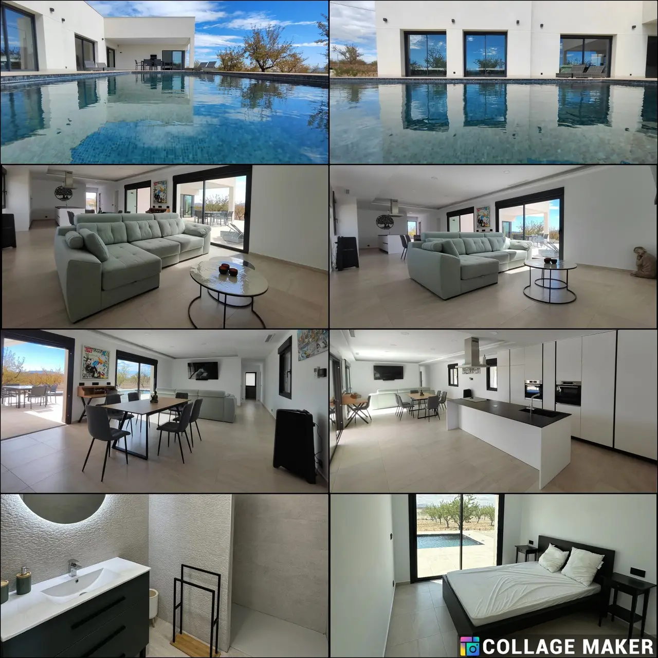 Omringd door wijngaarden, amandelbomen en olijfgaarden zijn de villa’s gebouwd volgens de hoogste kwaliteit met een eigentijds ontwerp met zeer veel natuurlijk lichtinval via de drie grote patioramen met elektrisch sluitende jaloezieën en die leiden van de woon-/eetkamer naar het zwembad en de tuin.
