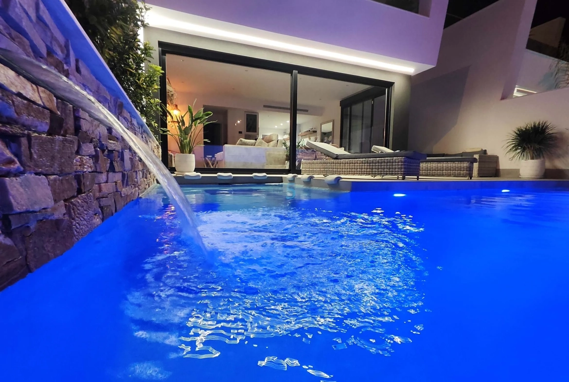 The house is being sold fully furnished with high end indoor and outdoor furniture throughout the property. It has air conditioning and heating and in addition to the extras already mentioned is has an automatic water irrigation system for the garden plants, a “smart house” system so from an app anywhere in the world you can control the heating of the pool which can go up to 38 degrees, the external lights of the house including the pool lights, a motion detection alarm system with detection on all doors and windows with additional cameras on the pool and garage area. These can also be operated from an app.