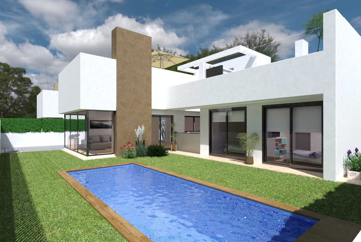De villa is volledig gelijkvloers ontworpen en beschikt over 3 ruime slaapkamers en 3 stijlvolle badkamers. De open woonkamer met grote raampartijen zorgt voor een overvloed aan natuurlijk licht en een naadloze verbinding met het buitenterras. De keuken is volledig uitgerust met moderne inbouwapparatuur, terwijl de hoogwaardige materialen en het verfijnde interieur een gevoel van exclusiviteit uitstralen.