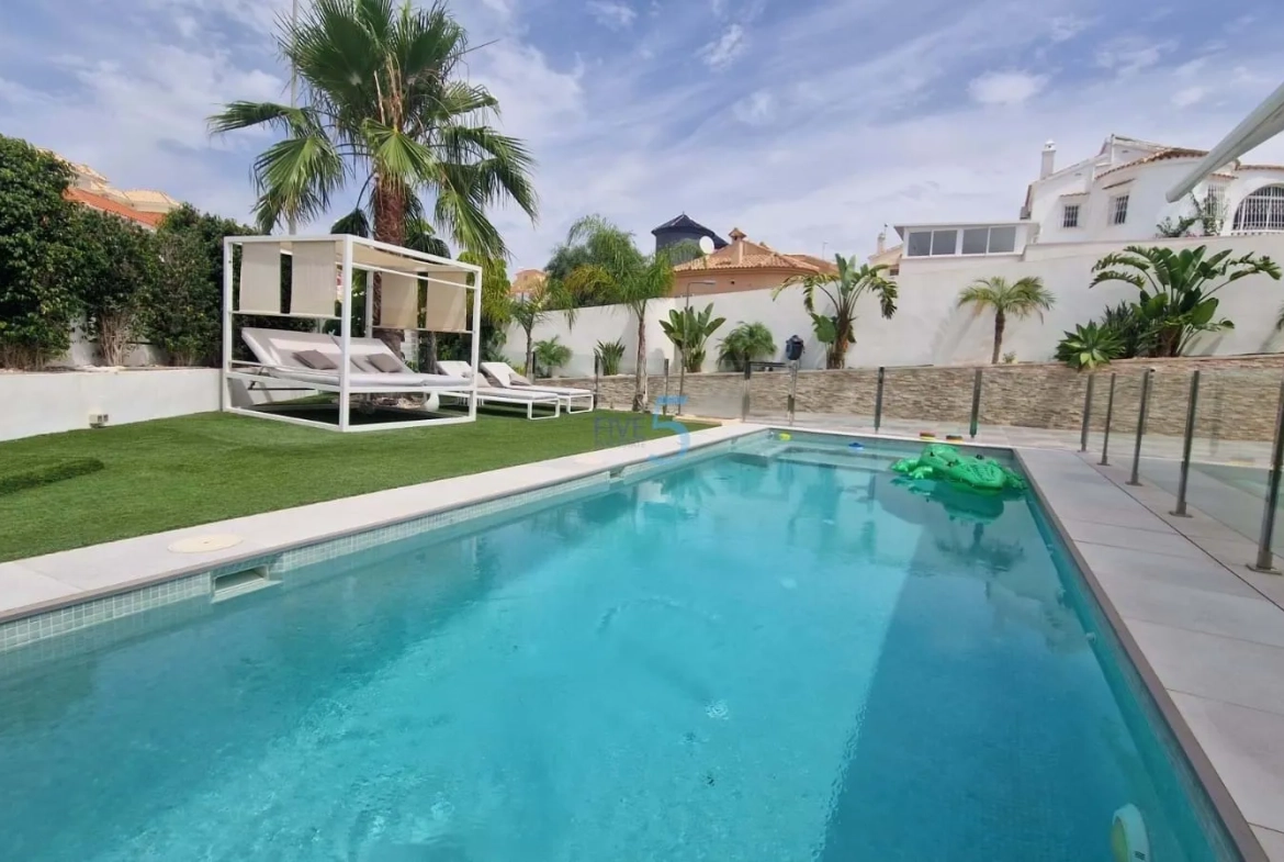 5 Real Estate is very exited to market this luxurious, spacious 4-bedroom, 2-bathroom detached villa on a large plot in Orihuela Costa, with a private pool, solar panels and a garage.
